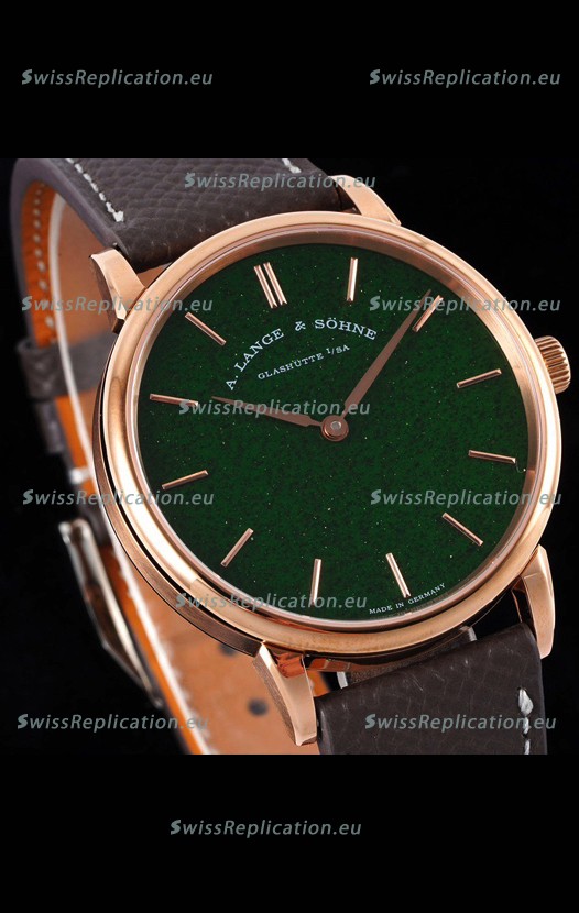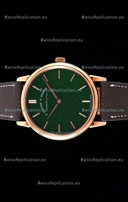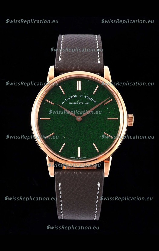 | Description | A.Lange & Sohne Saxonia Thin Swiss Replica Watch Rose Gold Case Green Starry Dial |