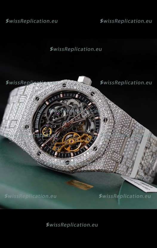 | Description | Audemars Piguet Royal Oak Super Clone Openworked ICED-OUT Edition Watch |