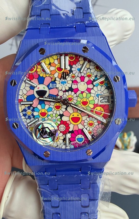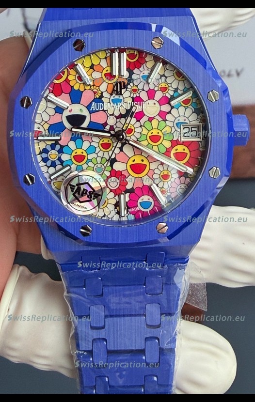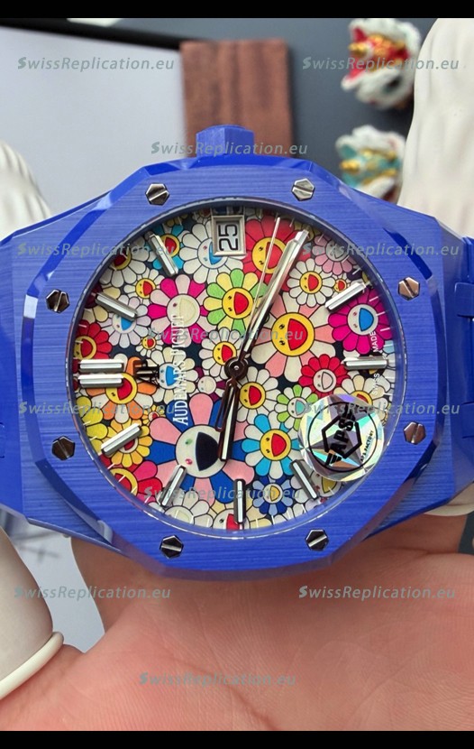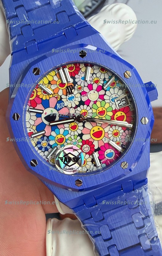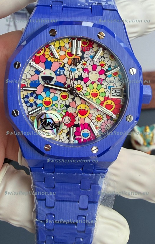 | Description | Audemars Piguet Super Clone Royal Oak Blue Ceramic Watch in Sun-Flower Dial |