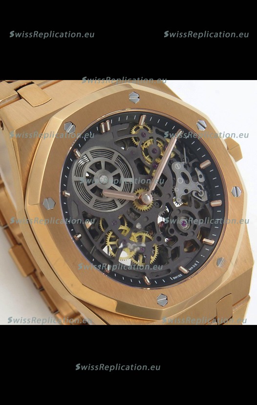 Rose Gold Plating on 904L Stainless Steel Strap linked with Screws complete with AP Markings and Engravings