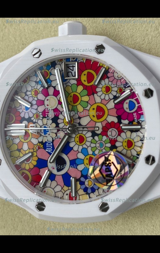 | Description | Audemars Piguet Super Clone Royal Oak White Ceramic Watch in Sun-Flower Dial |