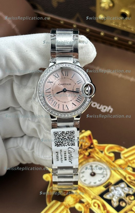 | Description | Ballon De Cartier Swiss Quartz 1:1 Mirror Quality 33MM in Steel Pink Dial |