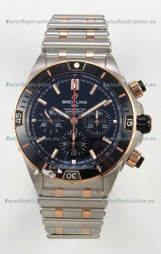 | Description | Breitling Chronomat Super Clone B01 42 Edition Swiss Two Tone Black Dial Watch |
