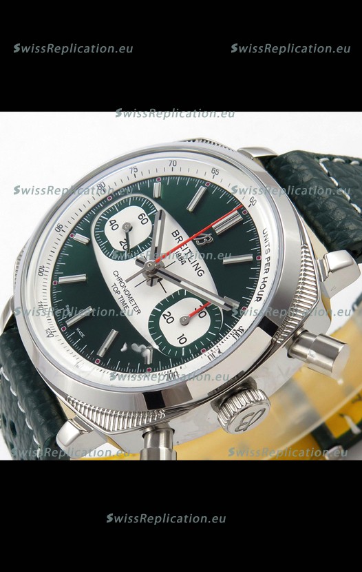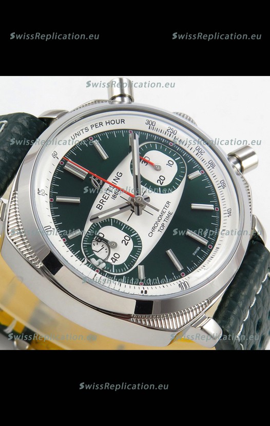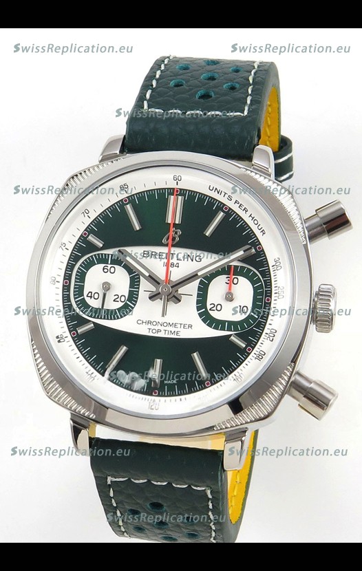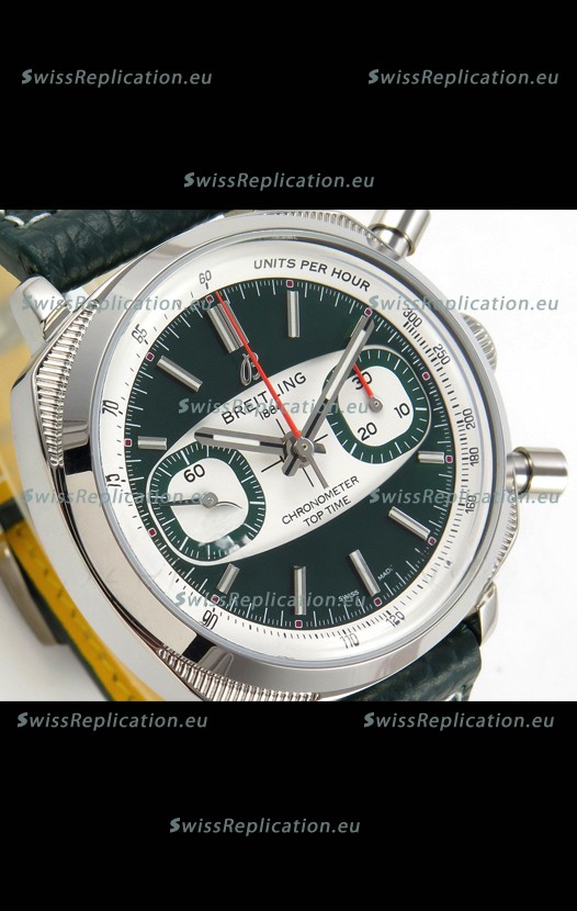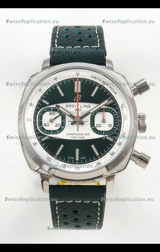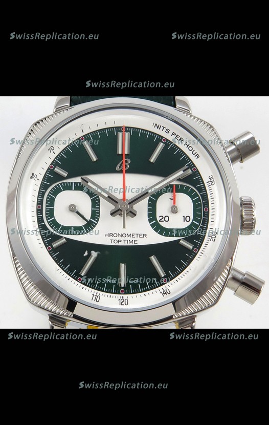 | Description | Breitling Top Time Super Clone Chronograph Black Leather Strap Watch |