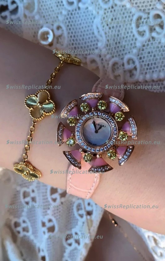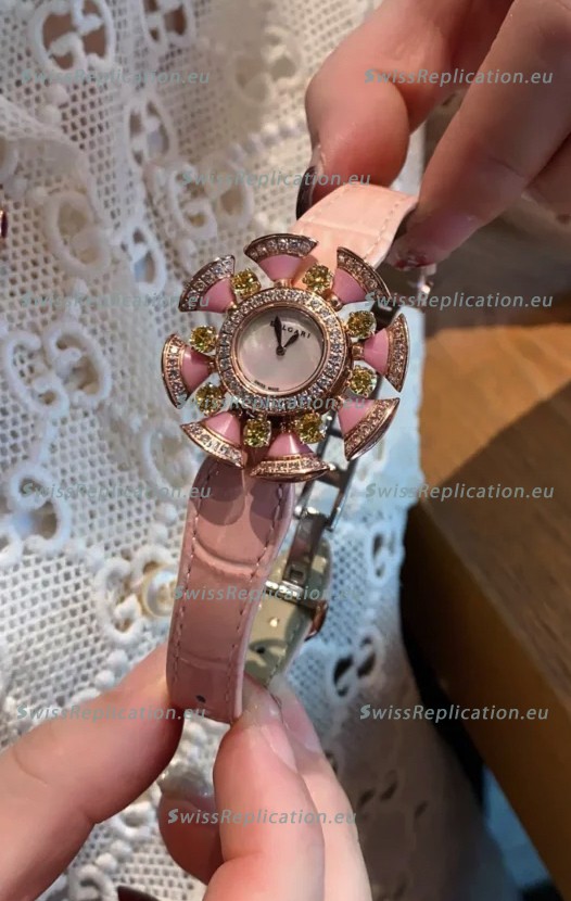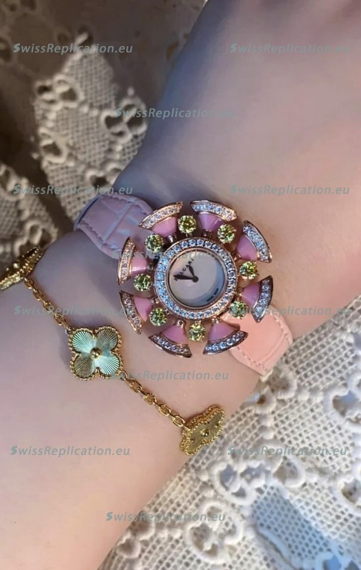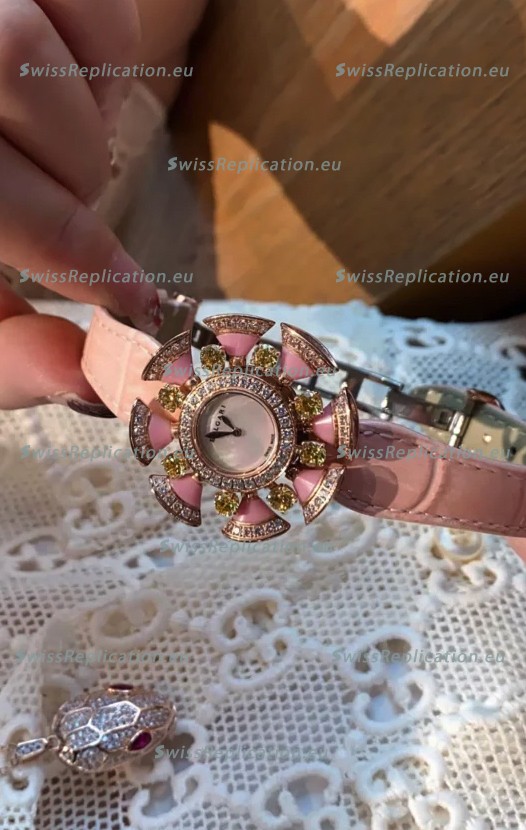 | Description | Bvlgari Divas's Dream Edition Watch in Rose Gold Casing - Diamonds Paved Bezel Swiss Replica |