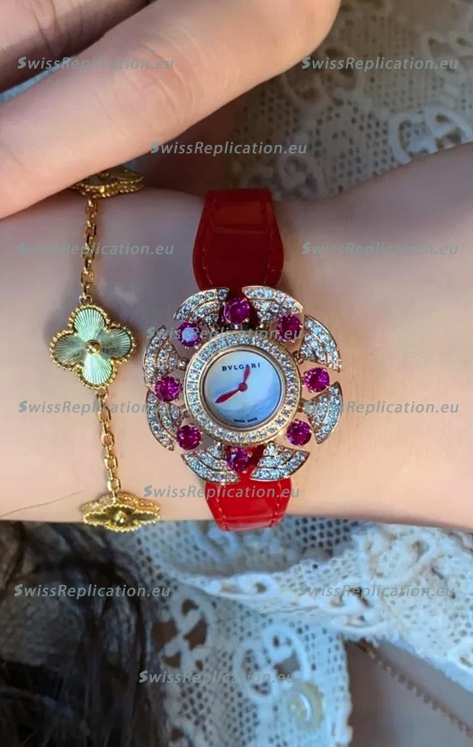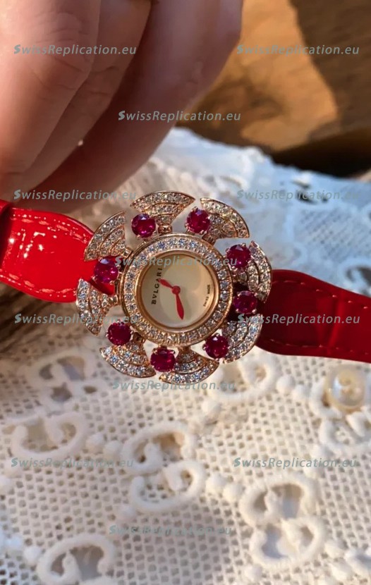 | Description | Bvlgari Divas's Dream Edition Watch in Rose Gold Casing - Diamonds Paved Bezel Swiss Replica |
