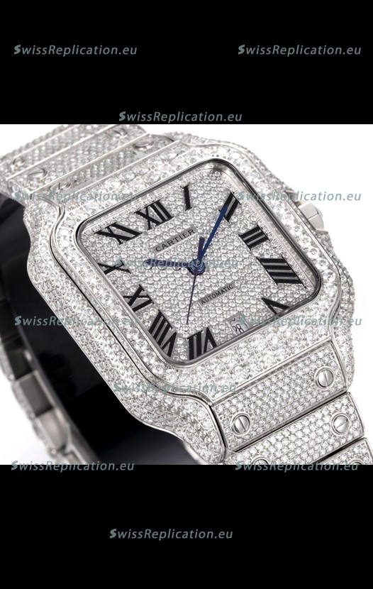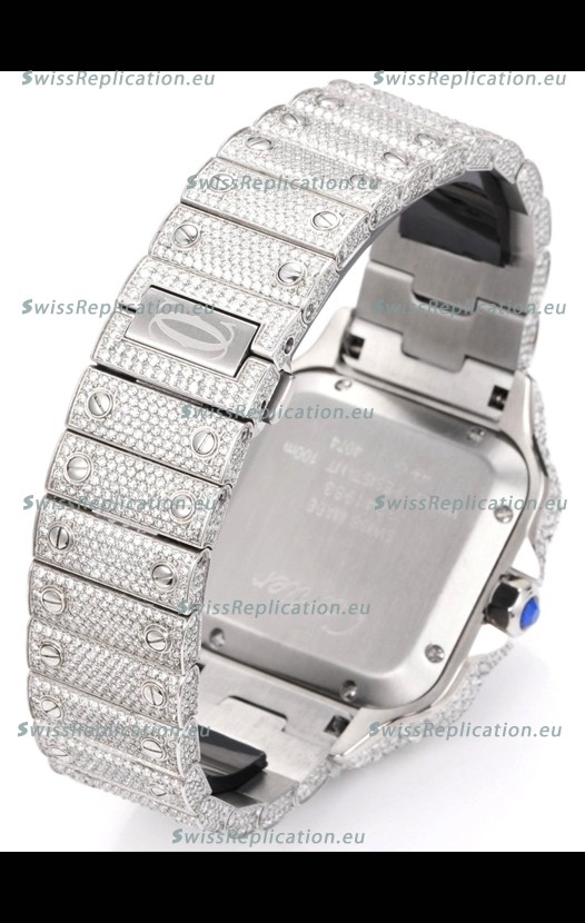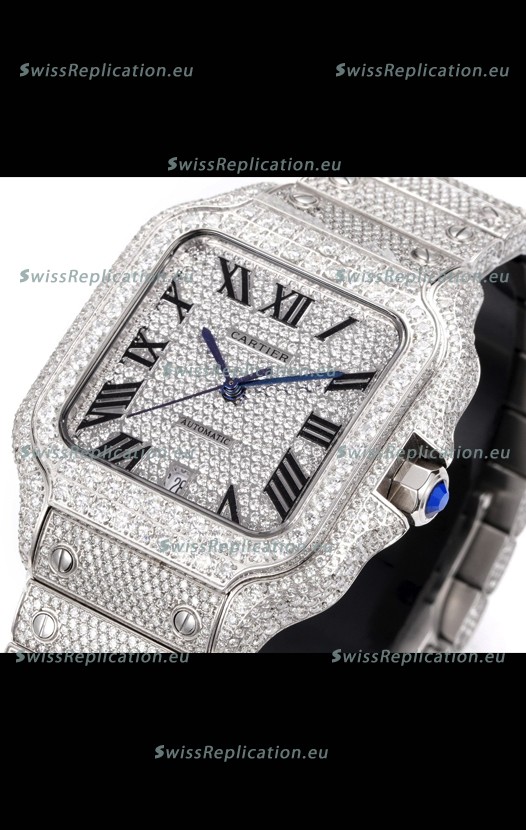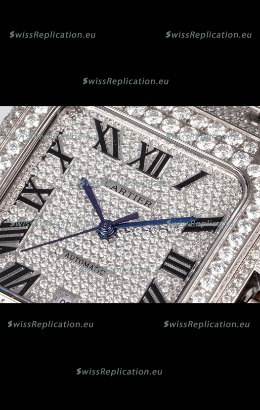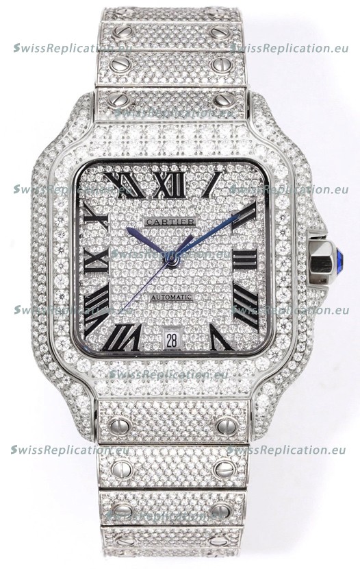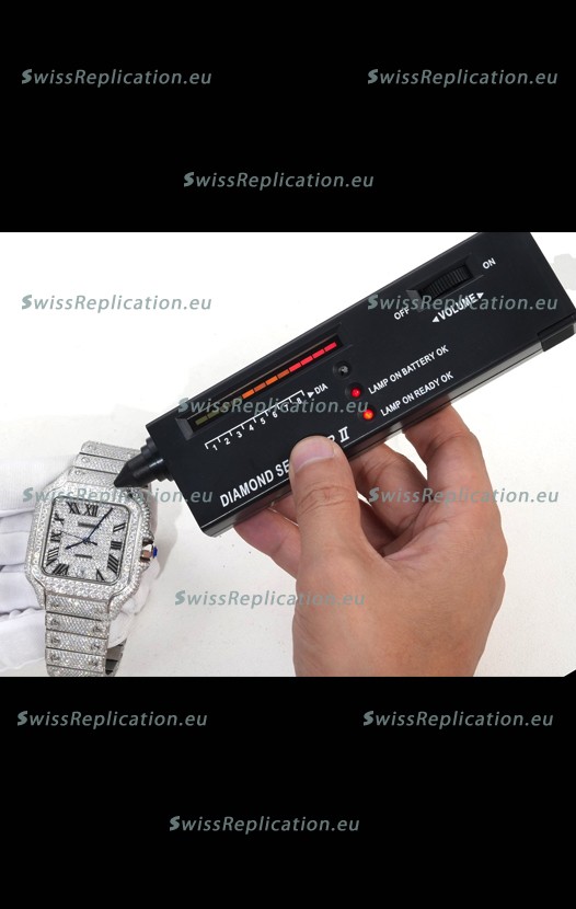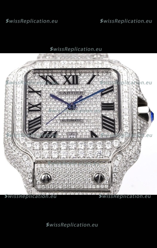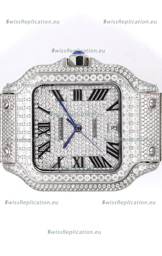 | Description | Cartier "Santos De Cartier" Stainless Steel W/ Diamonds Roman Dial 1:1 Mirror Replica - 40MM - Genuine Diamonds |
