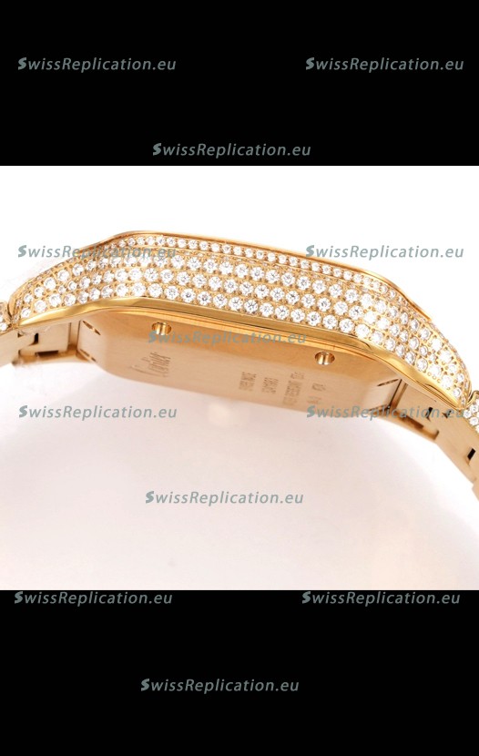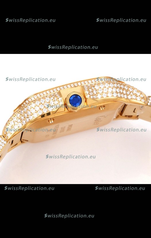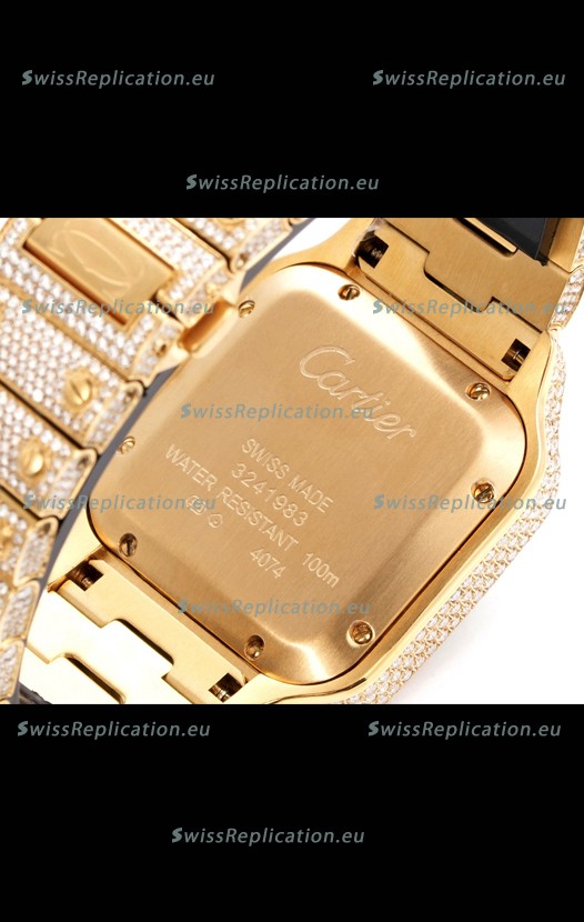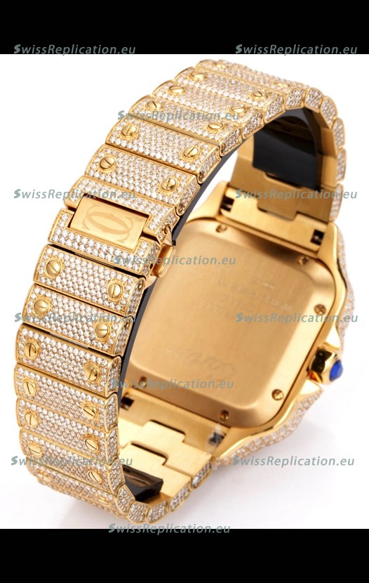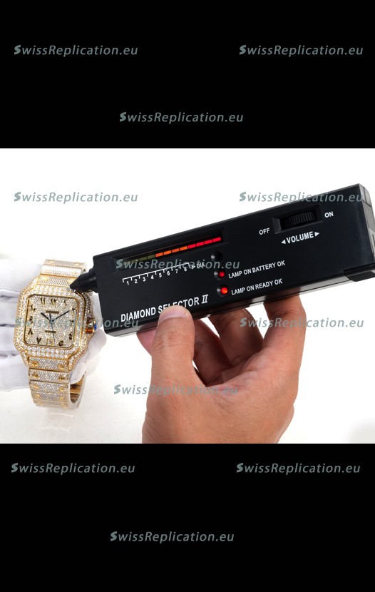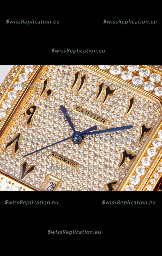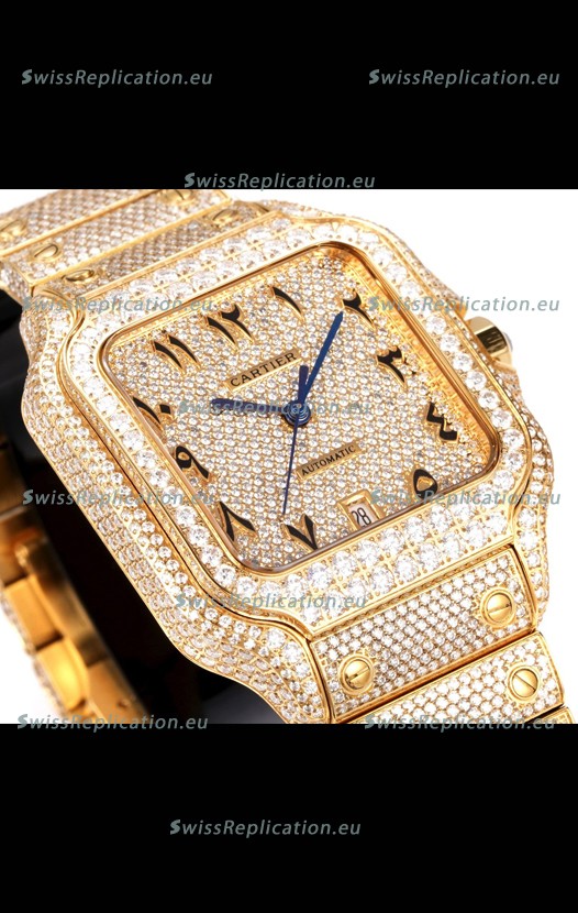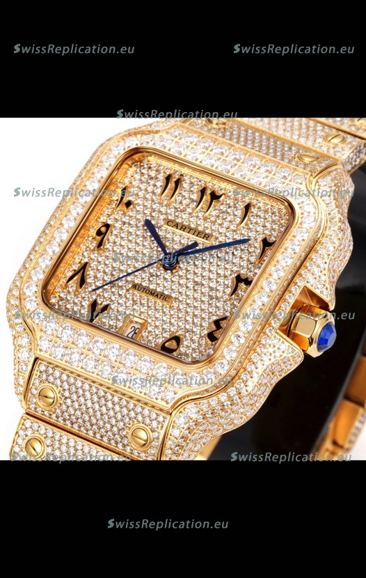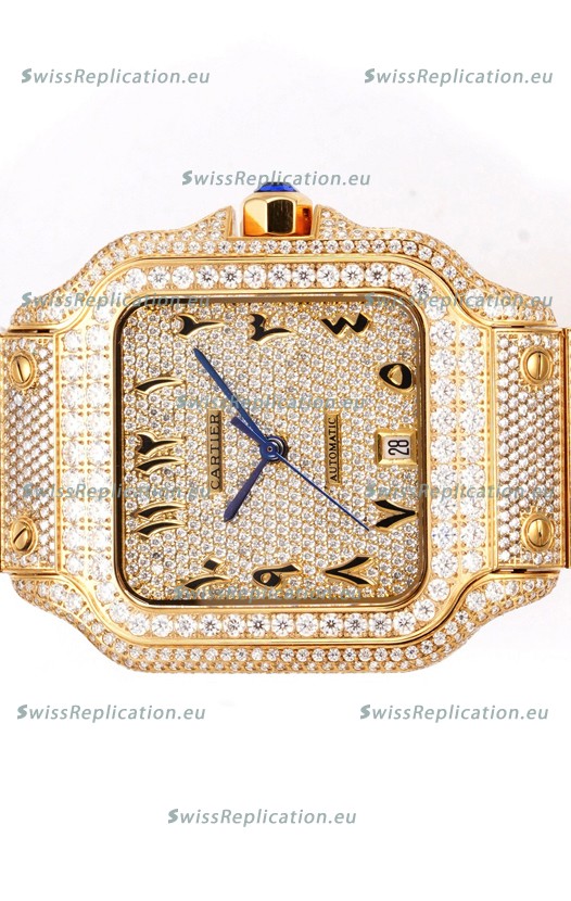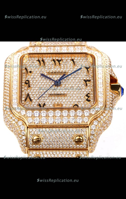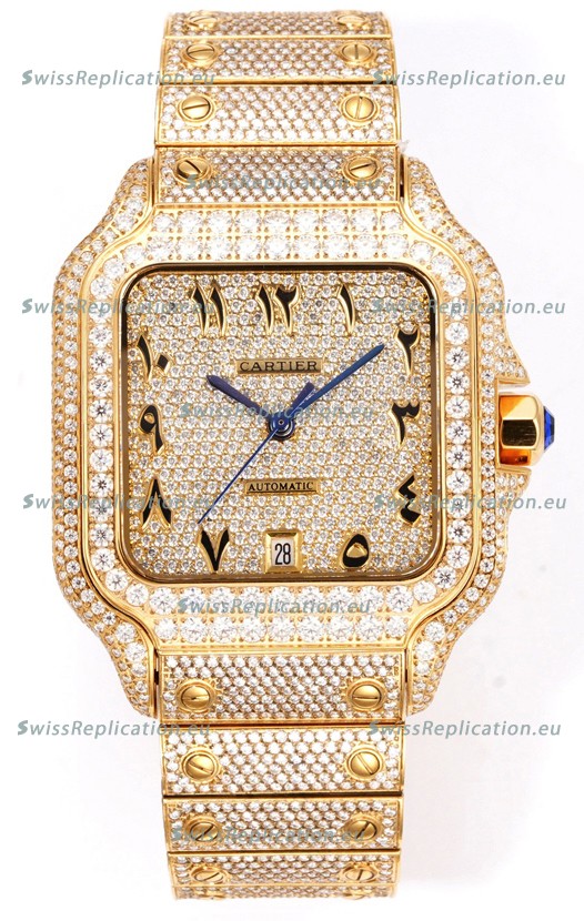 | Description | Cartier "Santos De Cartier" Yellow Gold W/ Diamonds Arabic Dial 1:1 Mirror Replica - 40MM - Genuine Diamonds |