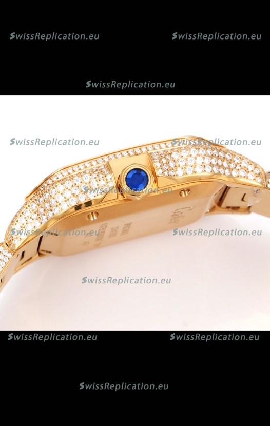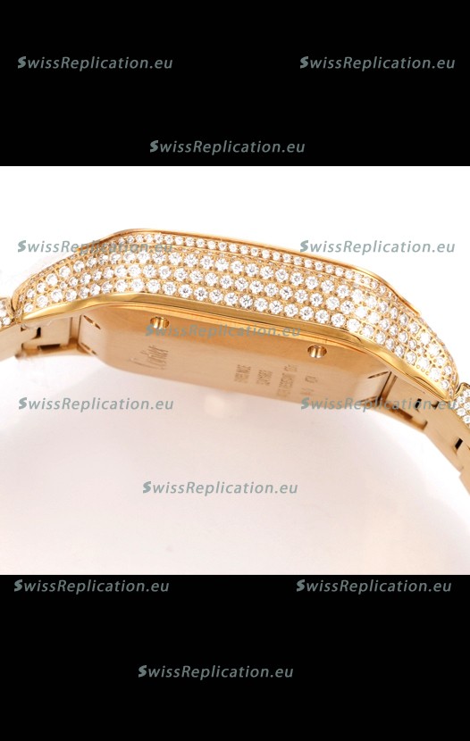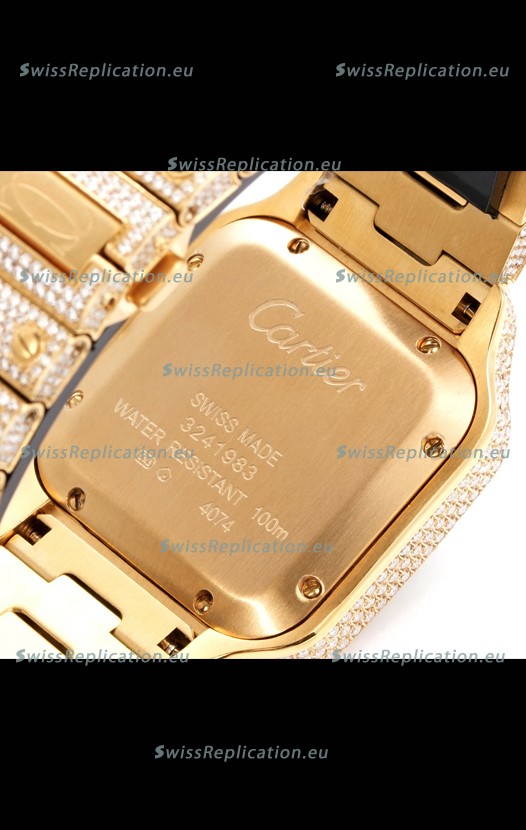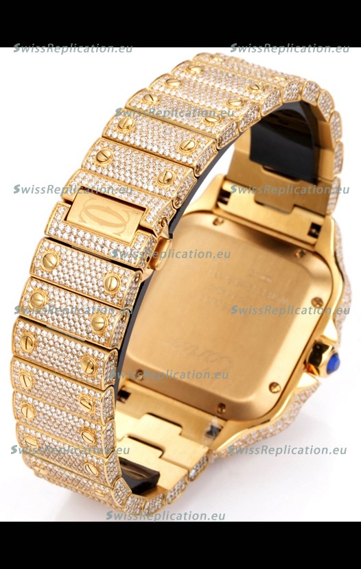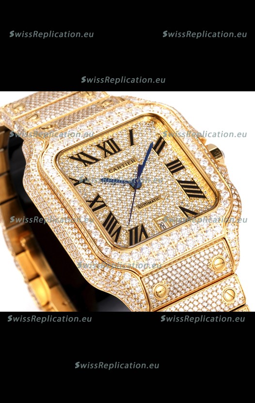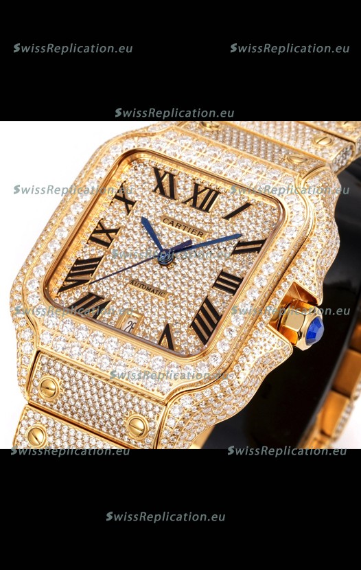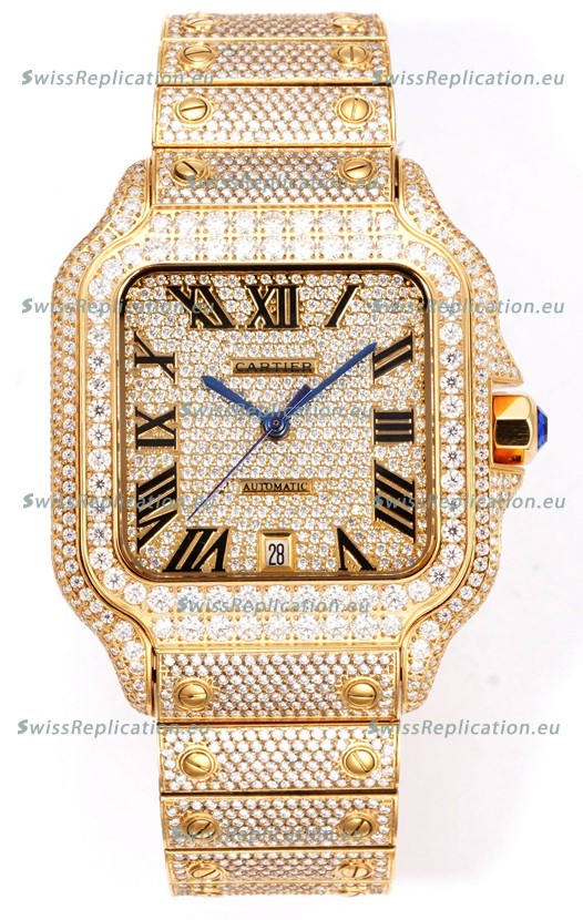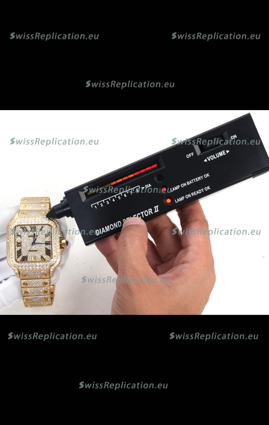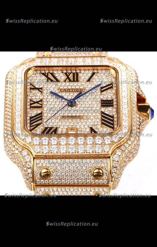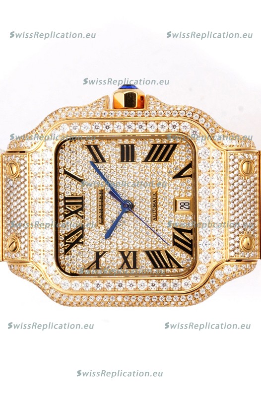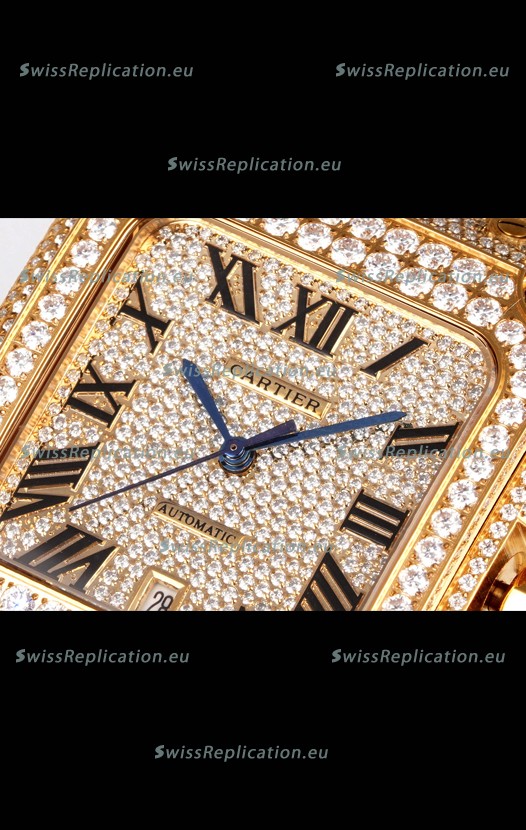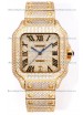 | Description | Cartier "Santos De Cartier" Yellow Gold W/ Diamonds Roman Dial 1:1 Mirror Replica - 40MM - Genuine Diamonds |