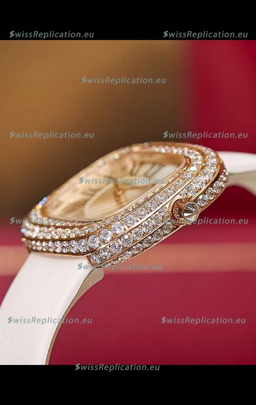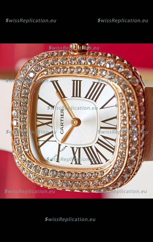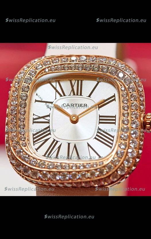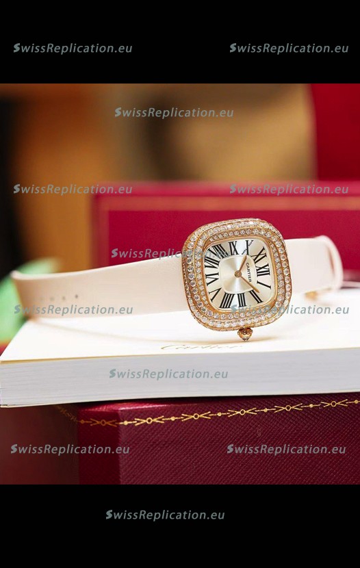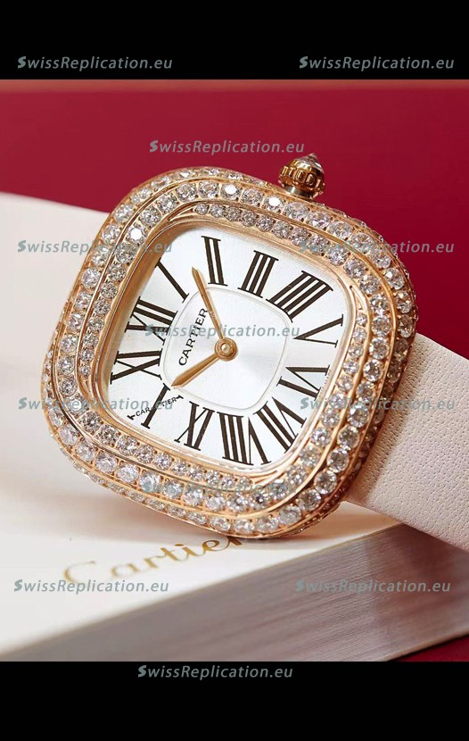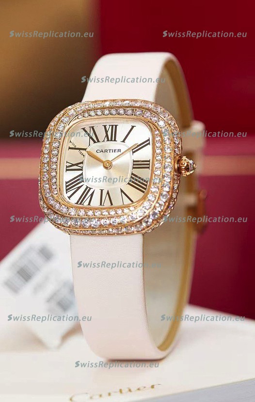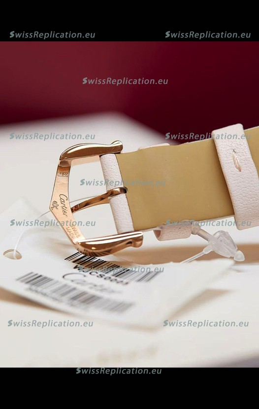 | Description | Coussin De Cartier Rose Gold Swiss Replica Watch White Strap |