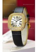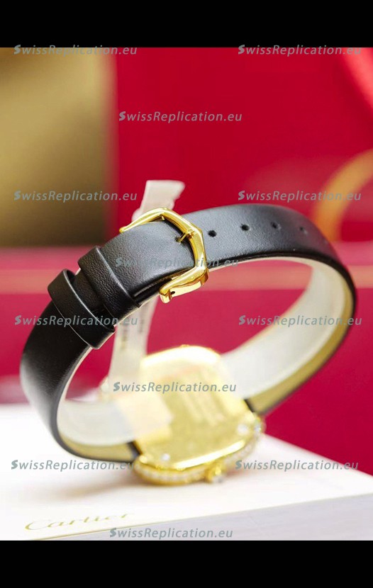 Coussin De Cartier Yellow Gold Swiss Replica Watch Black Strap