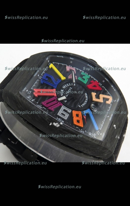 | Description | Franck Muller Super Clone Vanguard V45 Racing Carbon Watch in Nylon Strap |