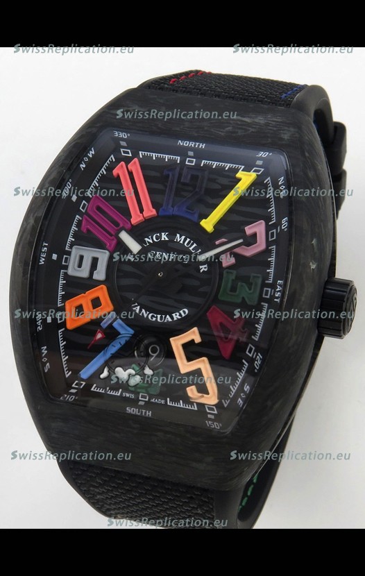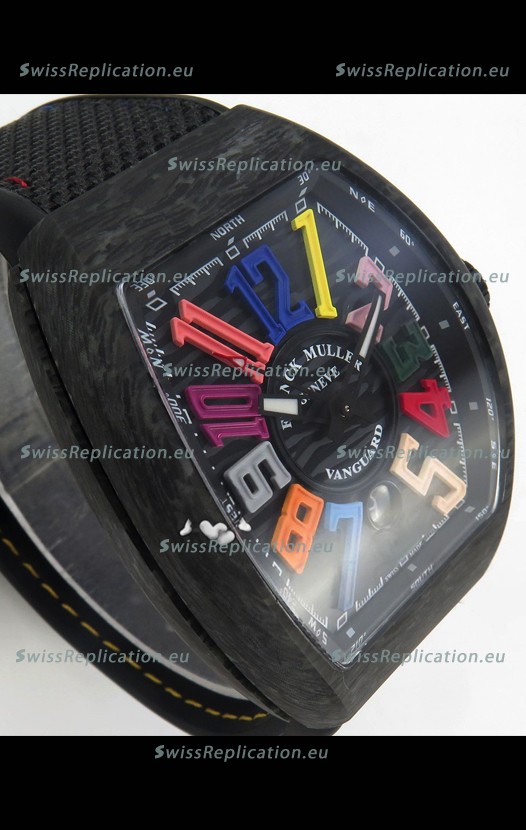 | Description | Franck Muller Super Clone Vanguard V45 Racing Carbon Watch in Nylon Strap |