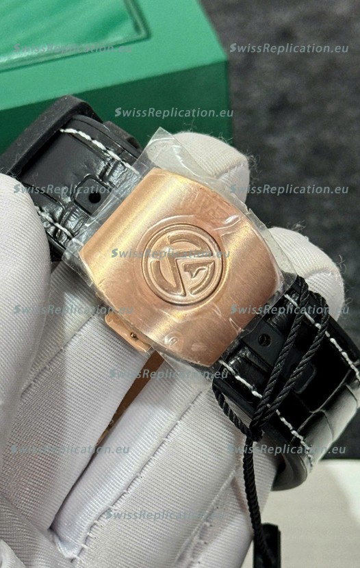 Genuine High Quality Leather Strap with Franck Muller Markings and Engravings with Stainless Steel PVD Coated Double Folding Clasp