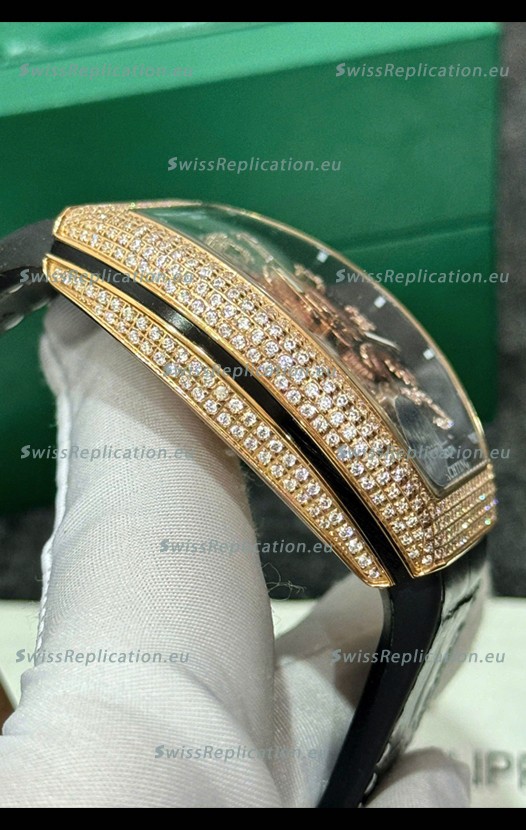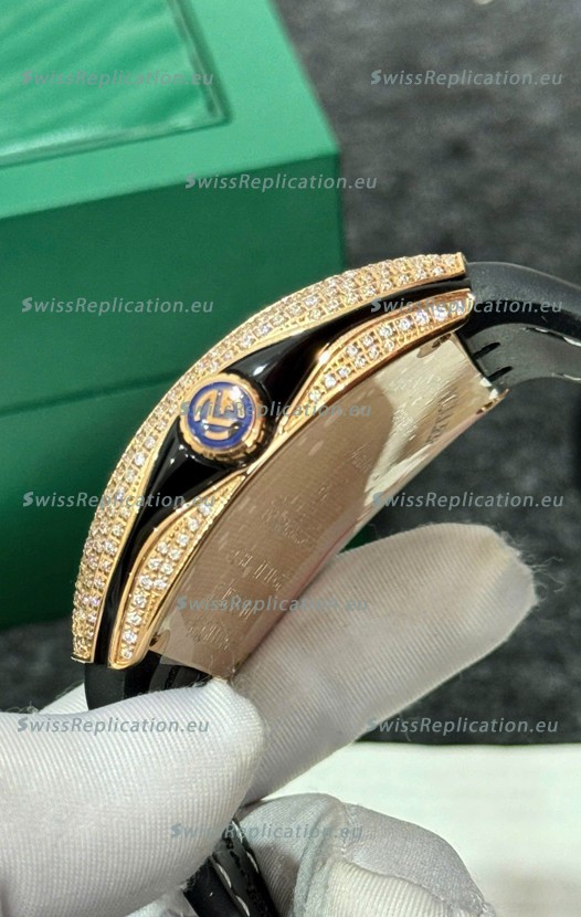 18K Rose Gold Plating on 904L Steel Case with Diamonds Paved Bezel
