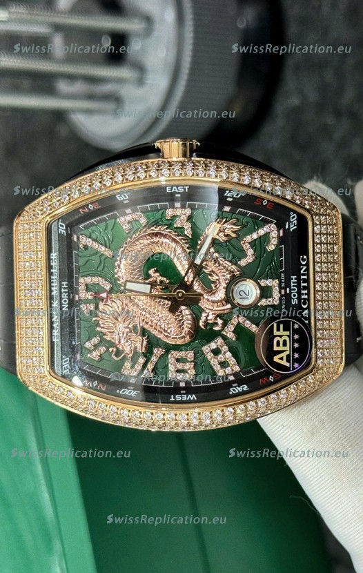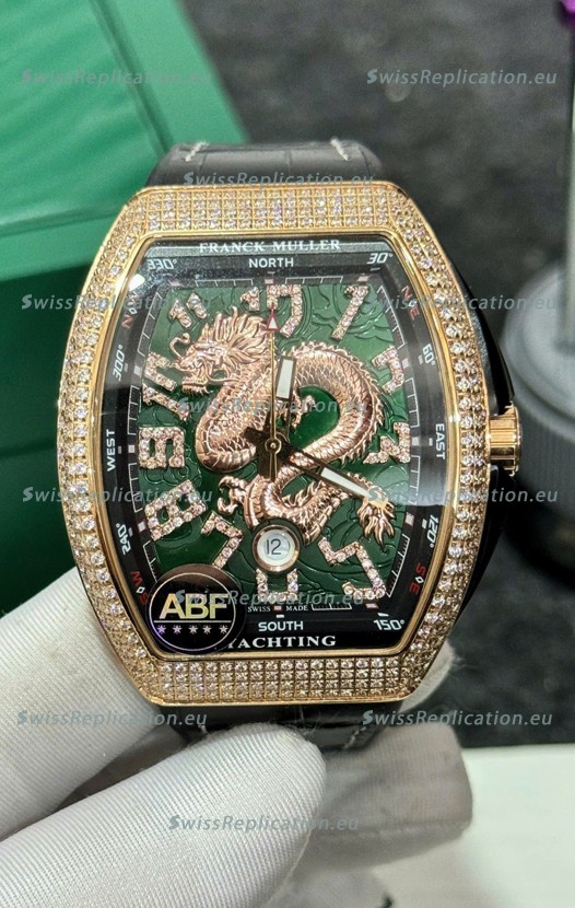 Franck Muller Vanguard Yachting Dragon V45 Green Dial in Gold Diamonds Bezel Swiss Replica