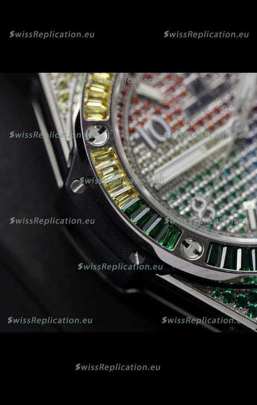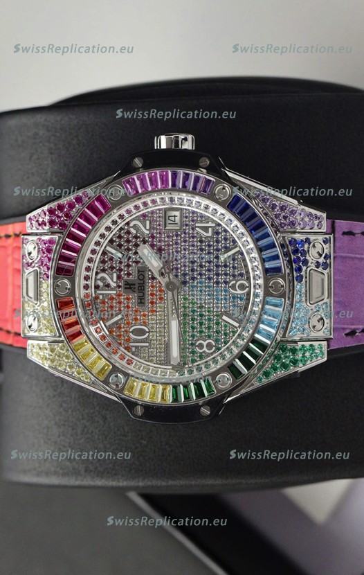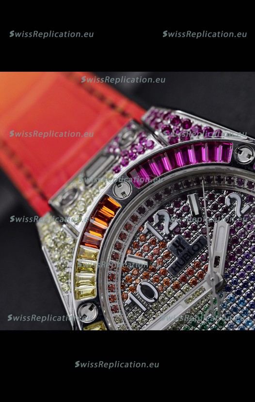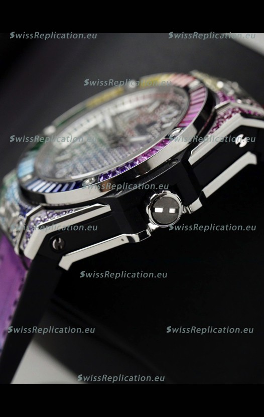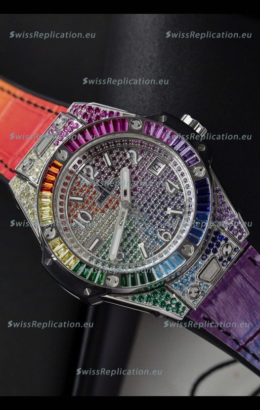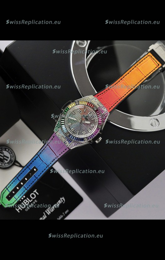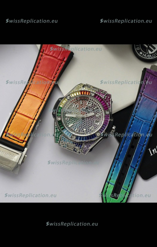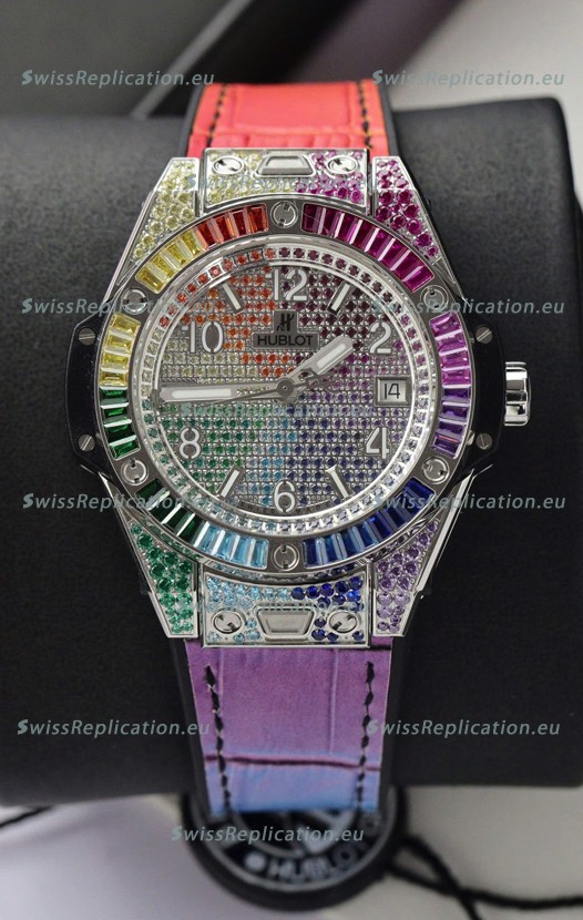 | Description | Hublot Big Bang One Click King White Dial Rainbow Diamonds 39MM Watch |
