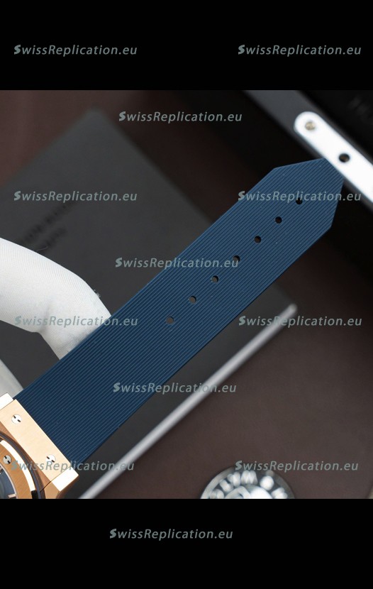 Rubber Strap with Rose Gold Folding Clasp complete with Hublot Markings and Engravings.