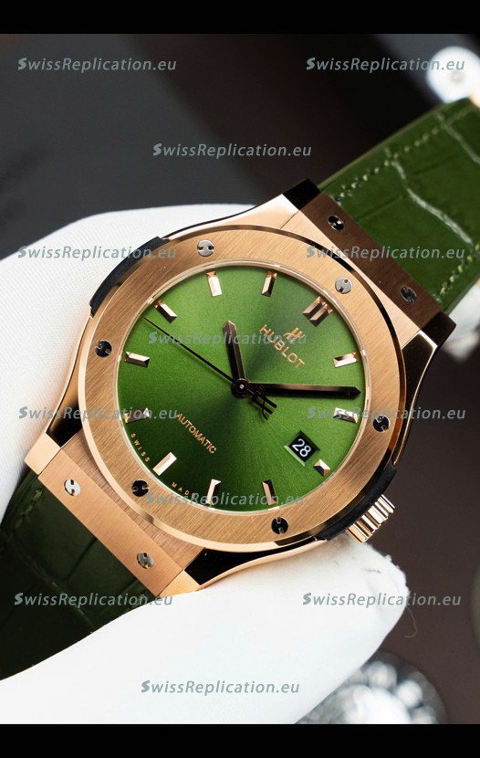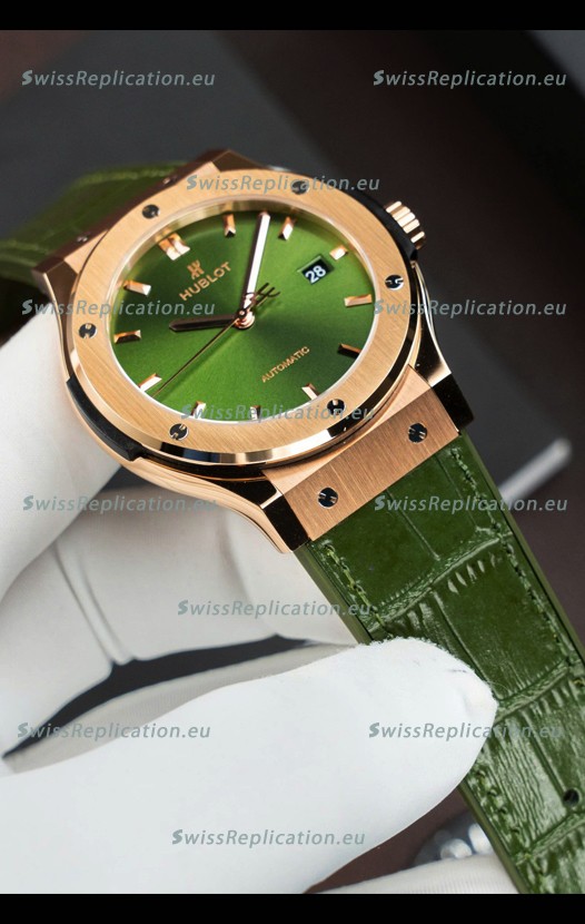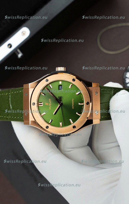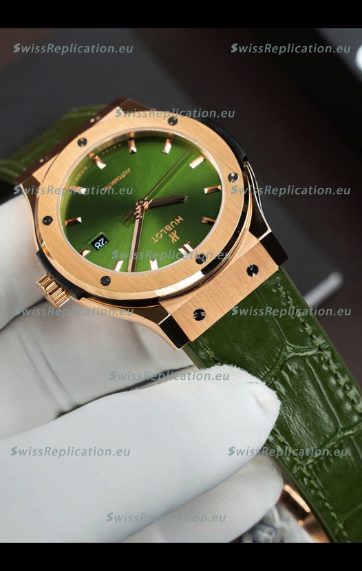 | Description | Hublot Super Clone Classic Fusion Titanium Rose Gold Green Dial 42MM Watch |