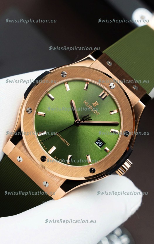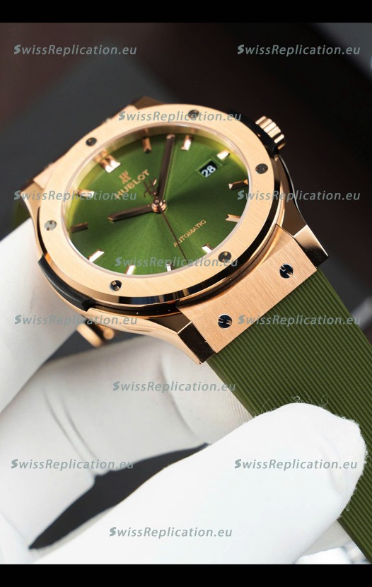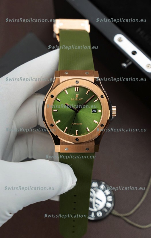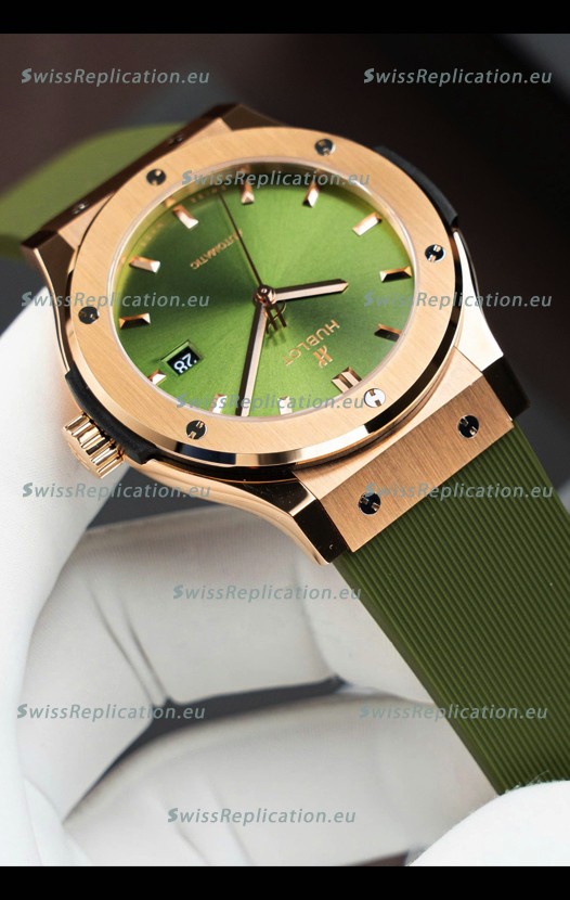 | Description | Hublot Super Clone Classic Fusion Titanium Rose Gold Green Dial 42MM Watch |
