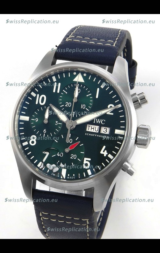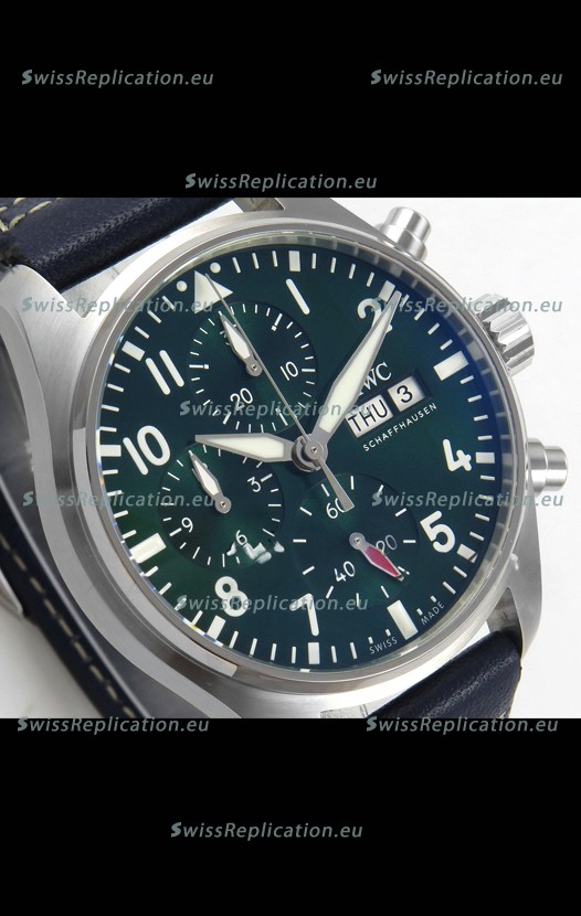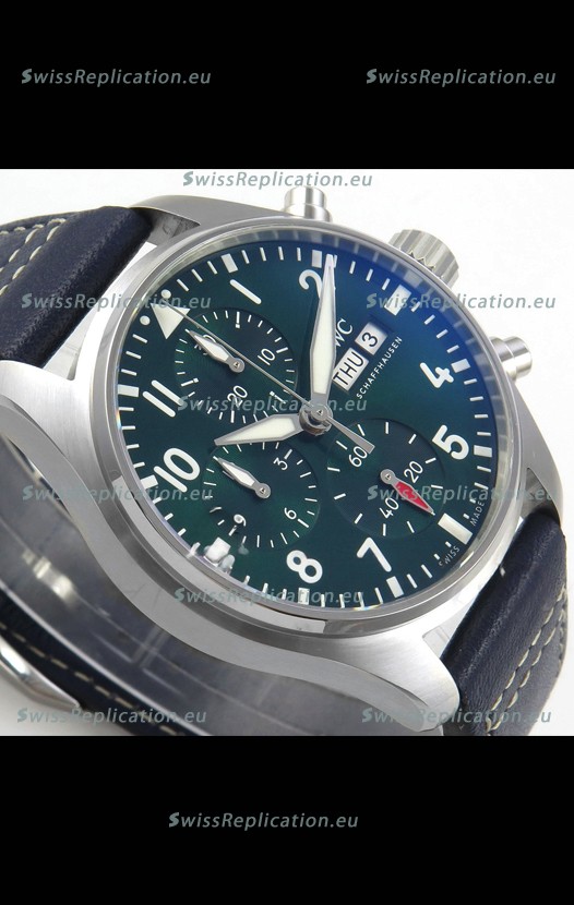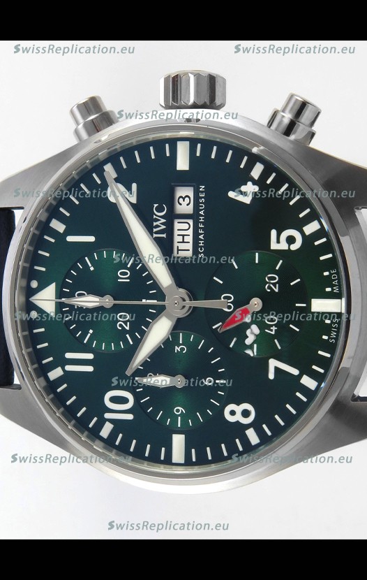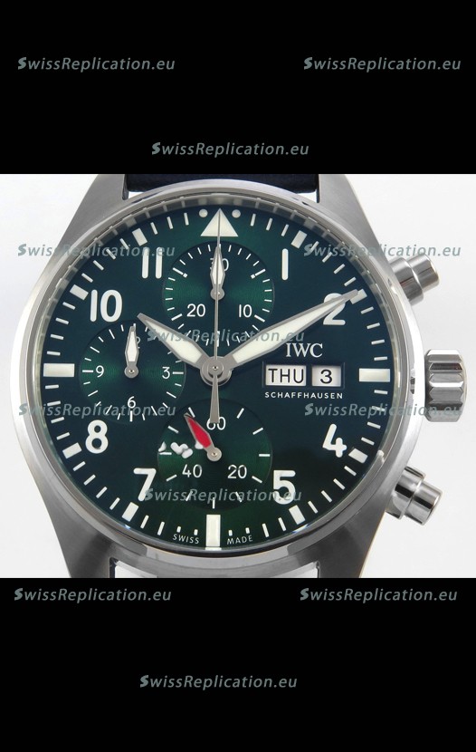 | Description | IWC Super Clone Pilot Chronograph Edition Green Dial Leather Swiss Replica Watch |