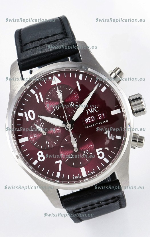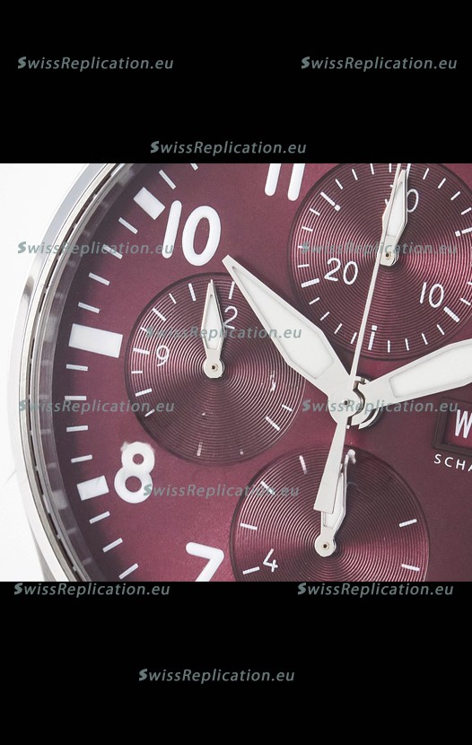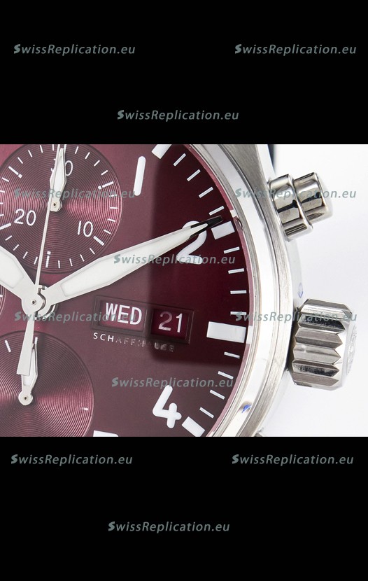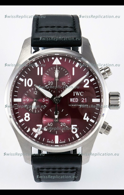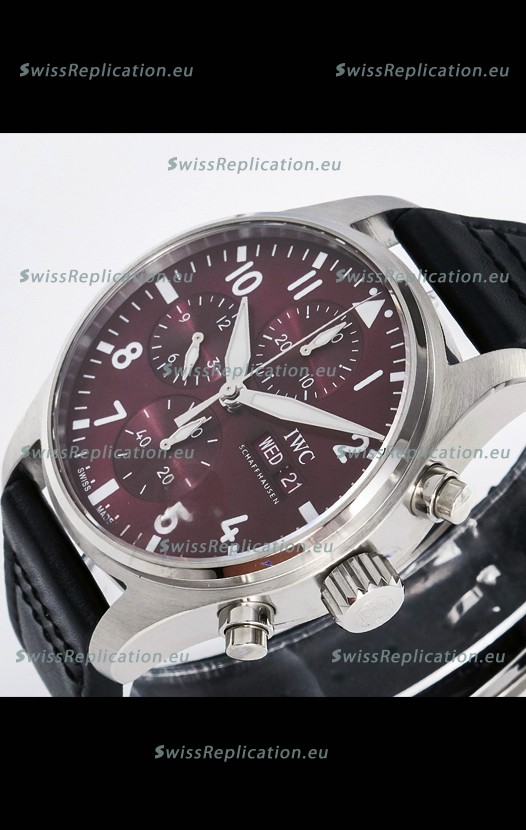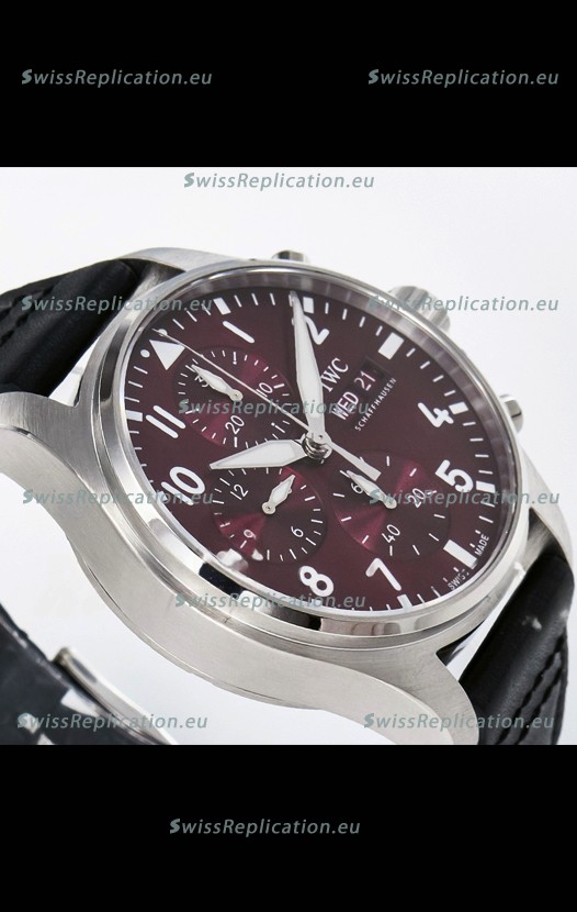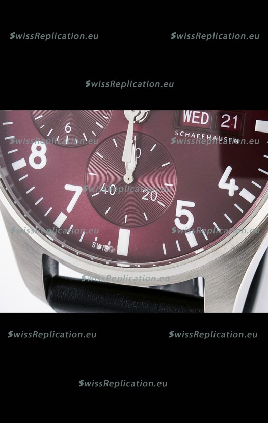 | Description | IWC Super Clone Pilot Chronograph Edition Red Dial Leather Swiss Replica Watch |