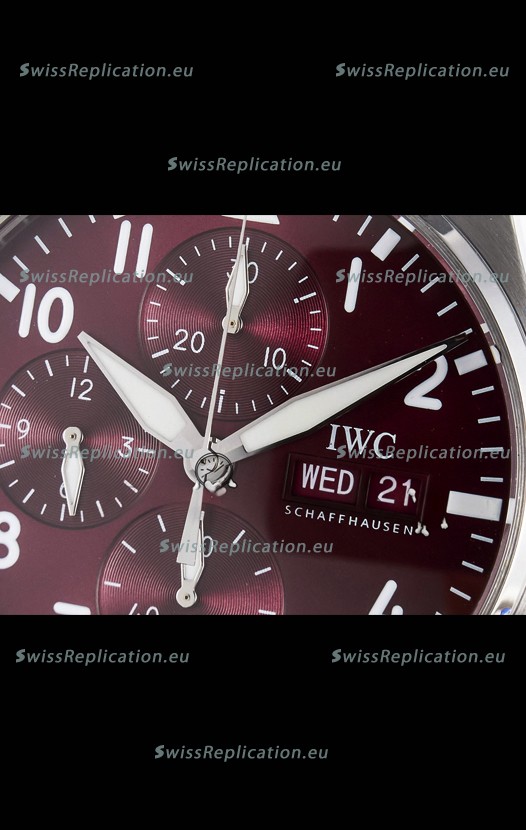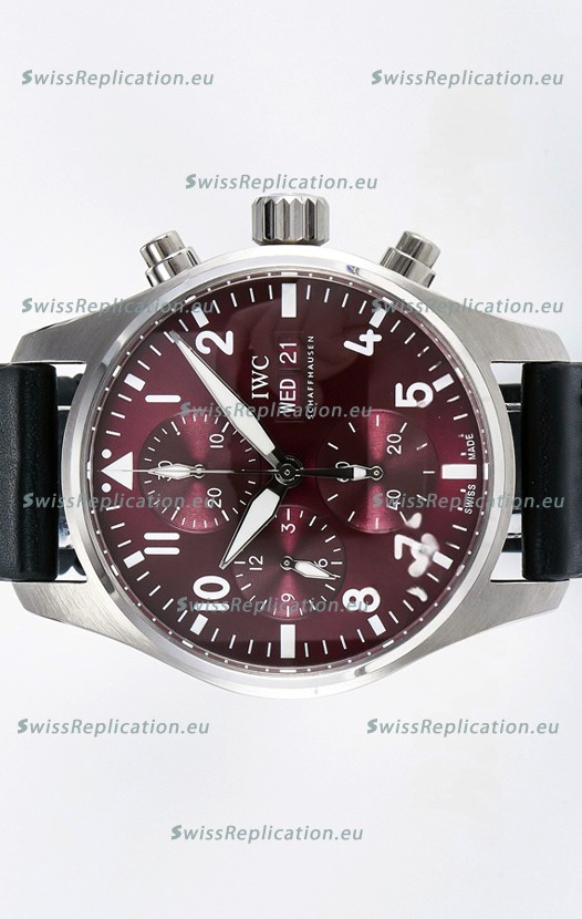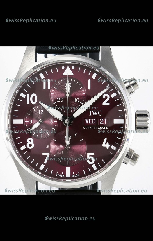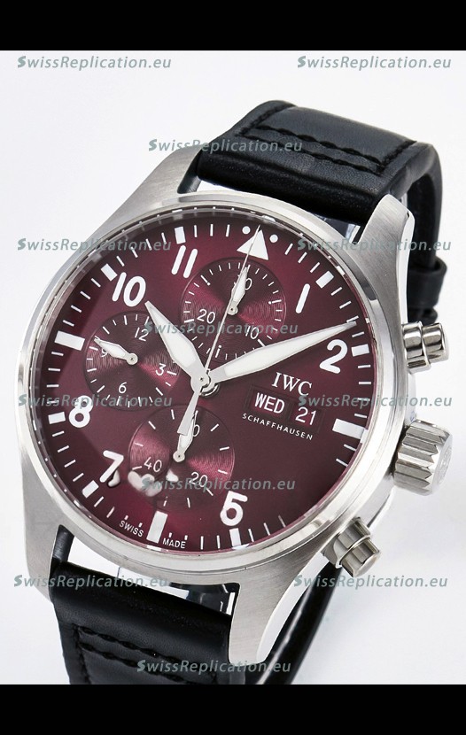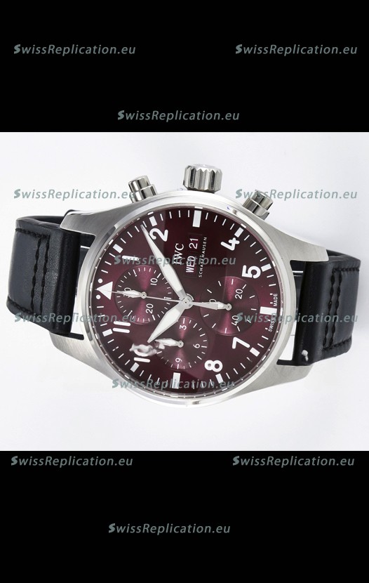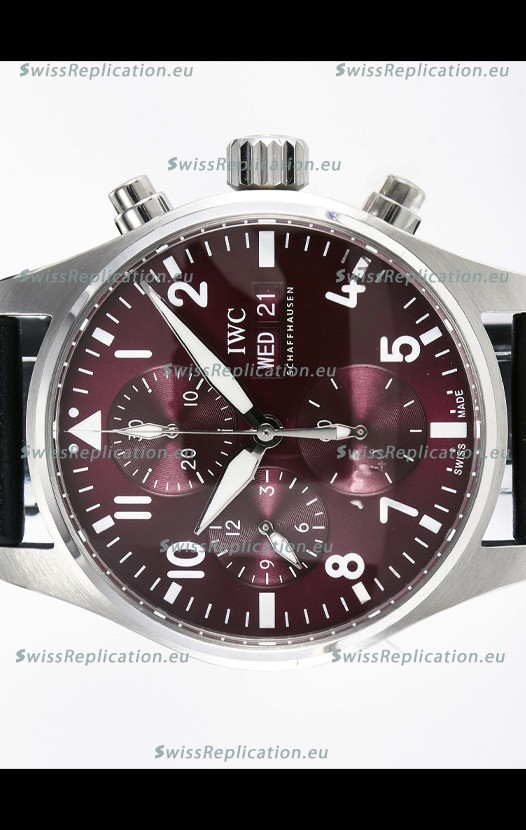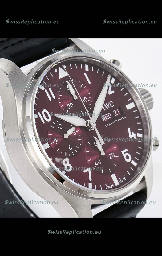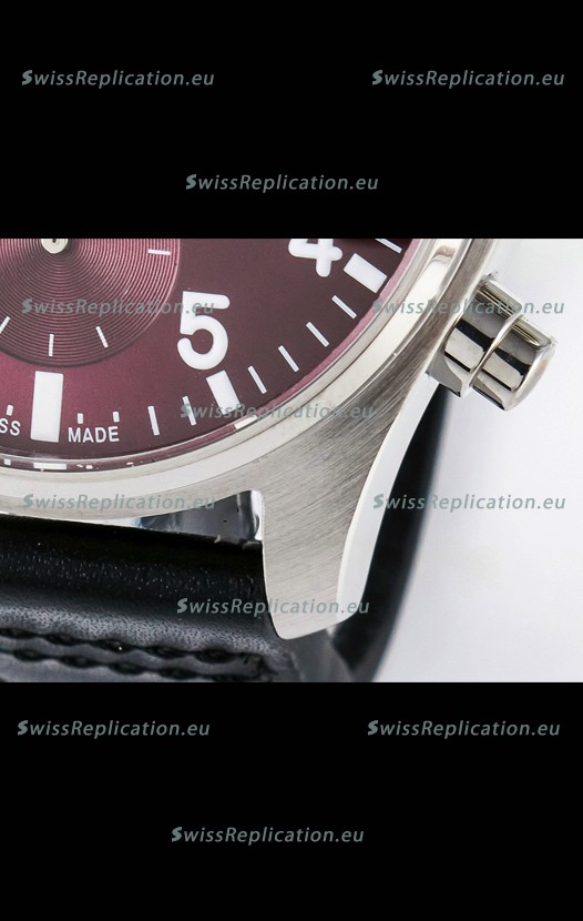 | Description | IWC Super Clone Pilot Chronograph Edition Red Dial Leather Swiss Replica Watch |