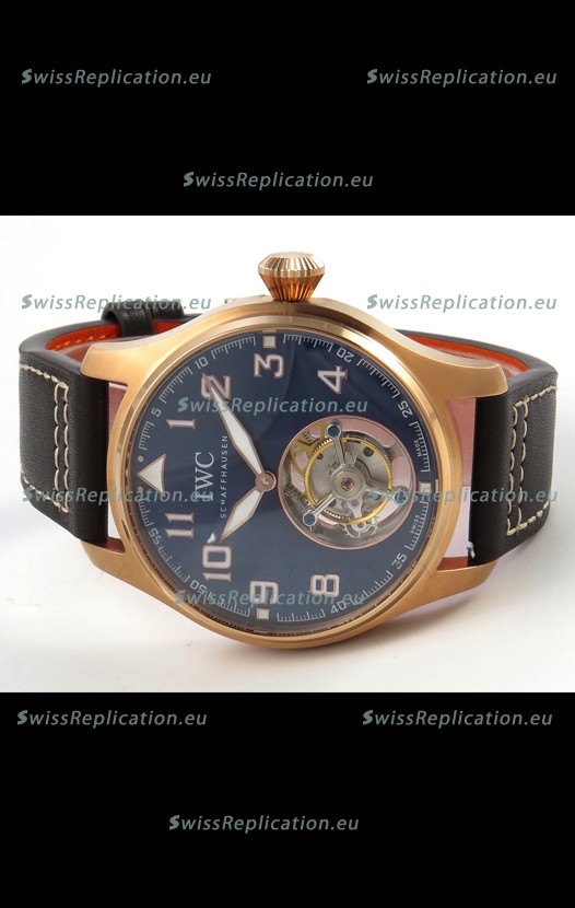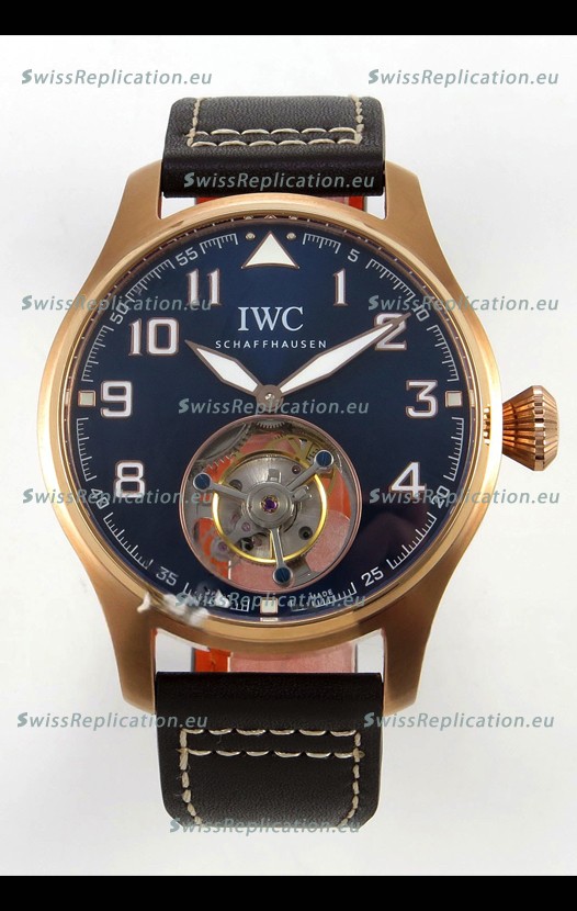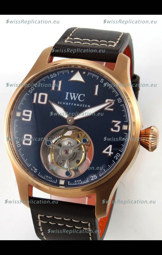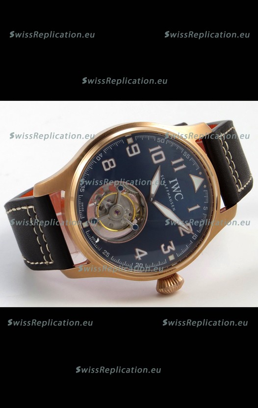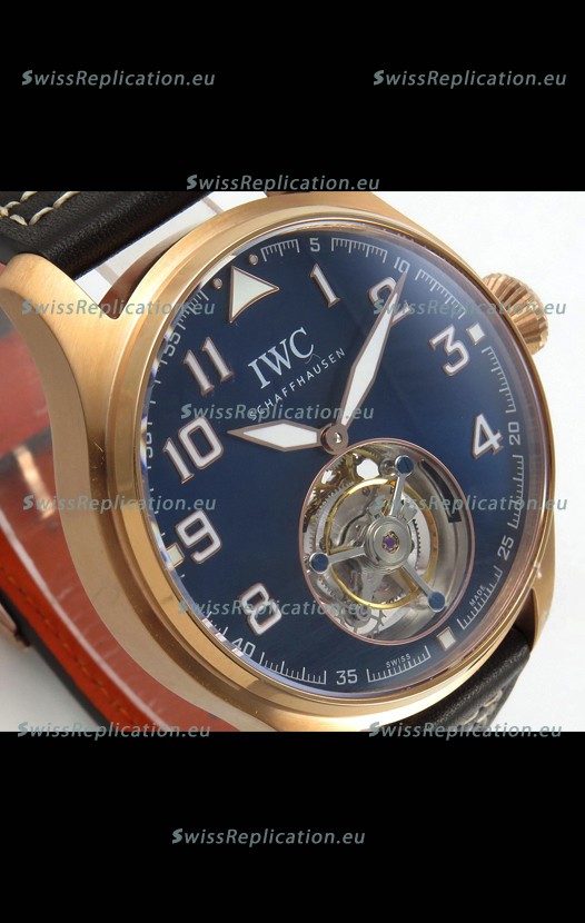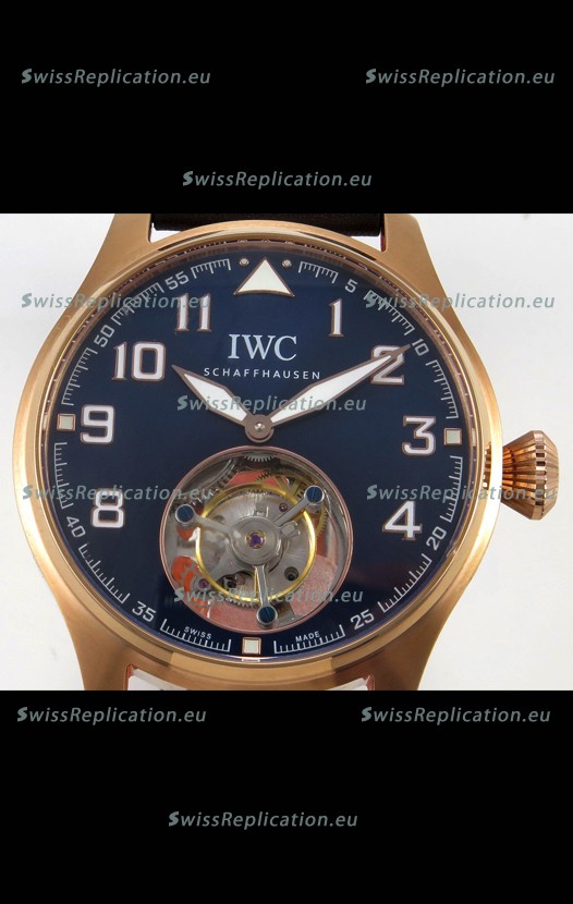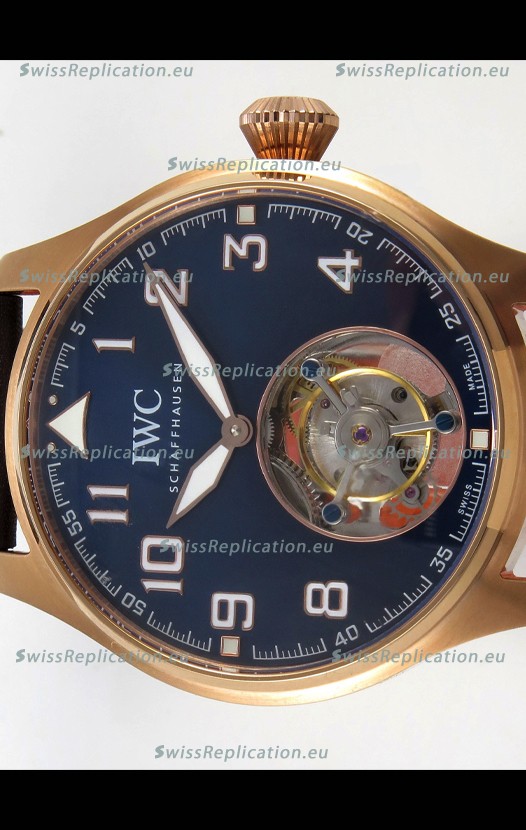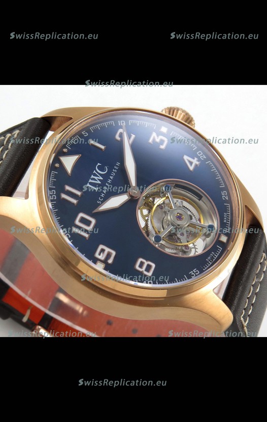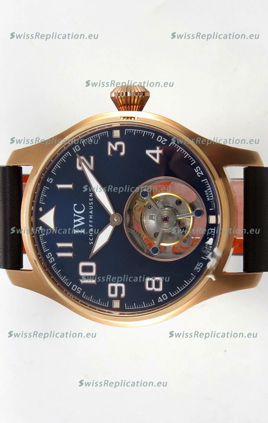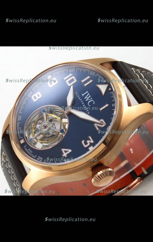 | Description | IWC Super Clone Portugese Hand-Wound Genuine Tourbillon Blue Dial Rose Gold Casing Watch |