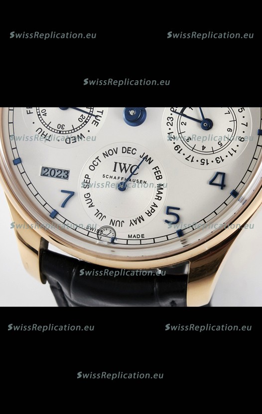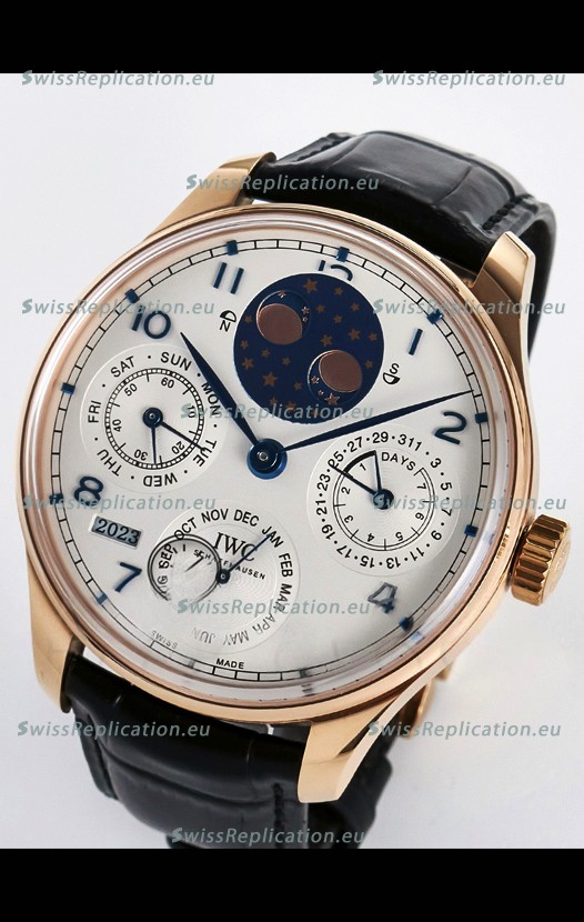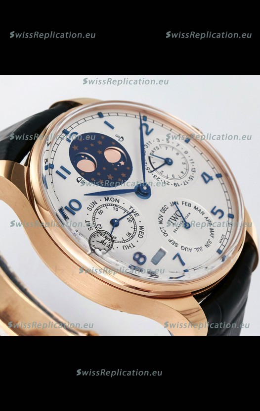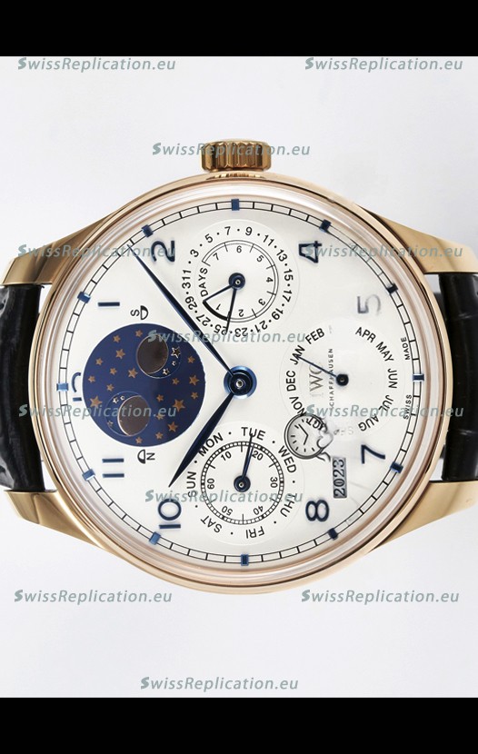 | Description | IWC Super Clone Portuguese Perpetual Calendar Rose Gold White Dial Replica Watch |