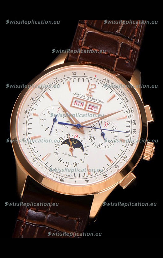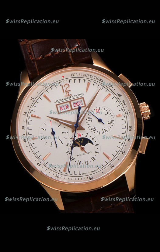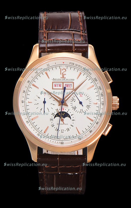 | Description | Jaeger LeCoultre Master Control Chronograph Calendar Rose Gold Swiss Replica Watch |