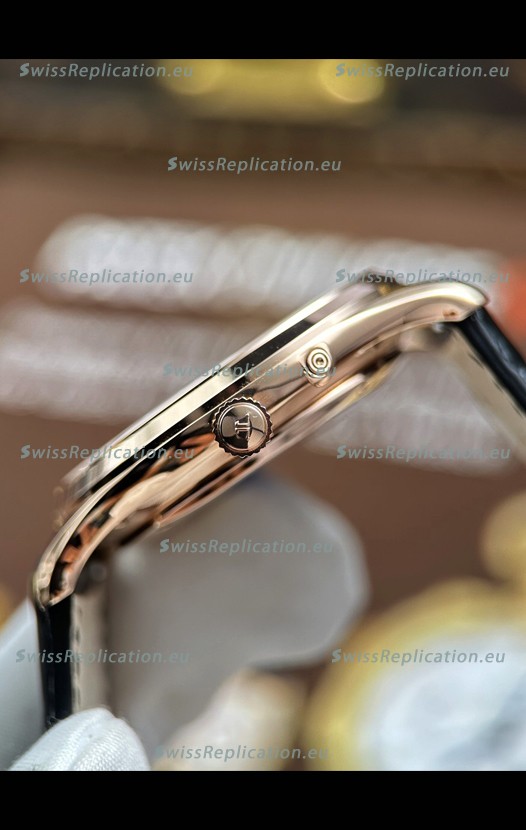 18K Rose Gold Plating on 904 Polished Stainless Steel Case with Open Case Back