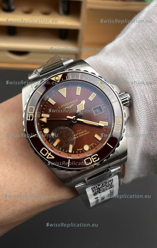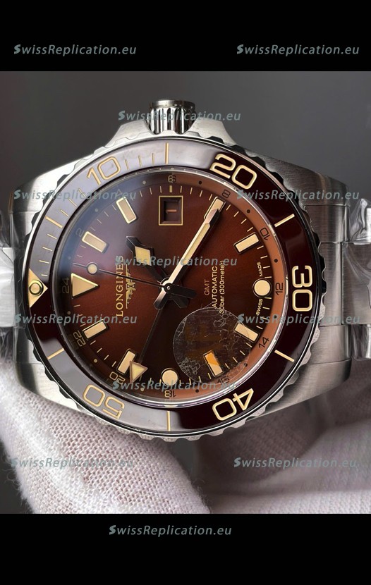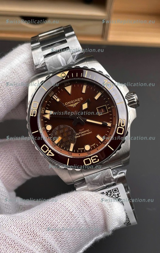 | Description | Longines HydroConquest GMT 1:1 Mirror Swiss Replica Watch in Brown Dial Steel Strap |