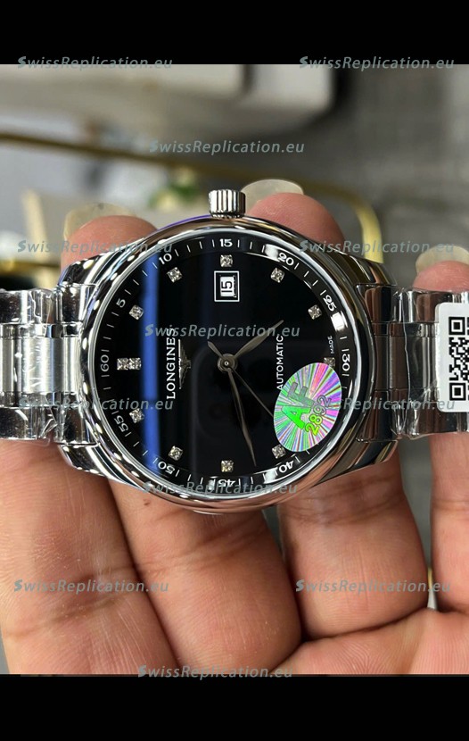 | Description | Longines Master Collection Automatic Moonphase Black Dial Swiss Replica Watch Steel Strap |