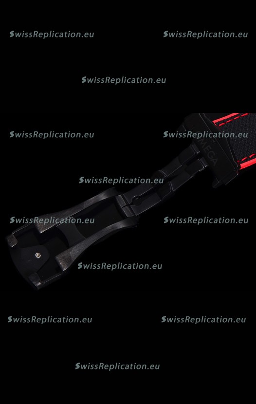 Black Rubber Strap with Omega Styled Folding Clasps complete with Omega Markings and Engravings