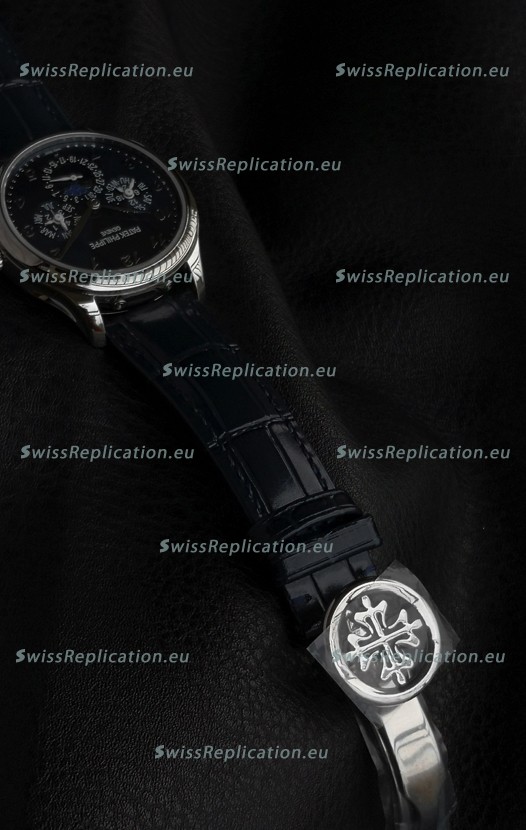 Genuine Leather Strap with Steel Folding Clasp complete with Patek Philippe Markings.