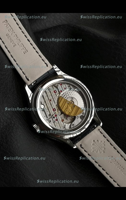 Genuine Swiss 9015 Movement assembled to Resemble the Authentic Patek Philippe PP 324 Calibre Style Movement. Updated Rotor, Bridged and Engravings on Movement with Rose Gold Plated Patek Philippe Stamped Rotor