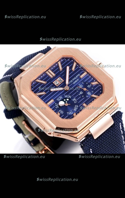 | Description | Patek Philippe Cubitus 5822 Rose Gold Casing Blue Dial Swiss Replica Watch |