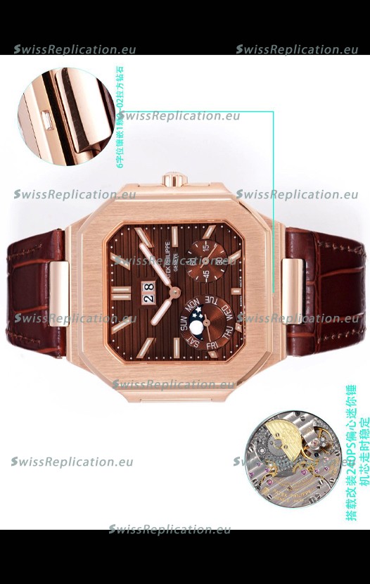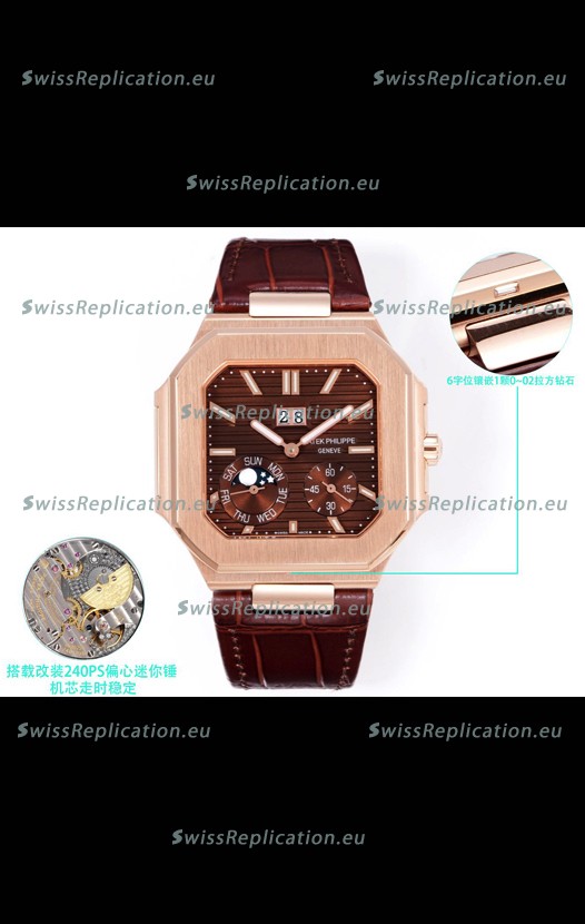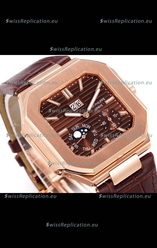 | Description | Patek Philippe Cubitus 5822 Rose Gold Casing Brown Dial Swiss Replica Watch |
