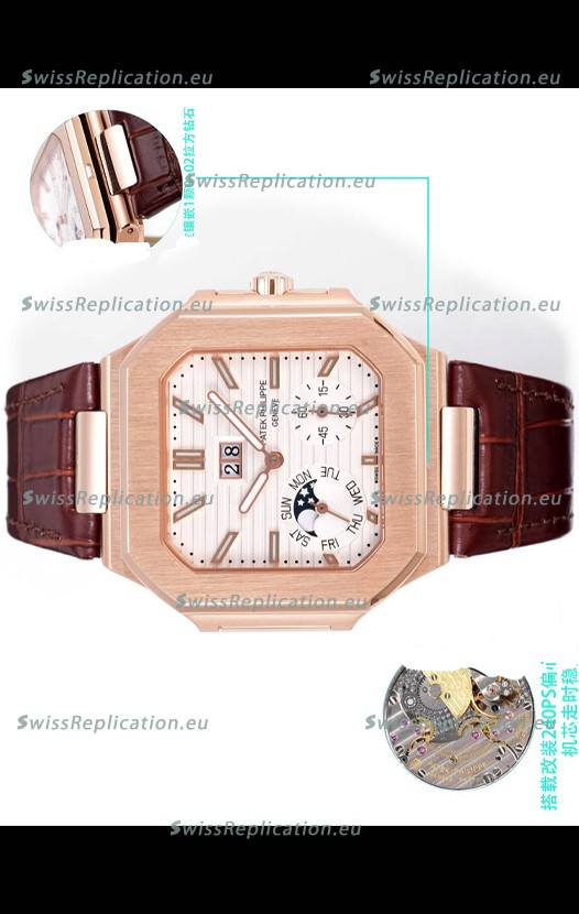 | Description | Patek Philippe Cubitus 5822 Rose Gold Casing White Dial Swiss Replica Watch |