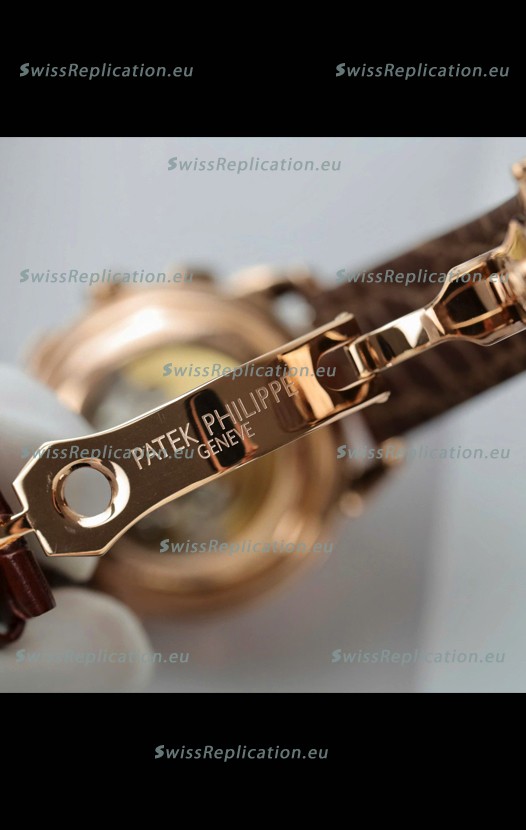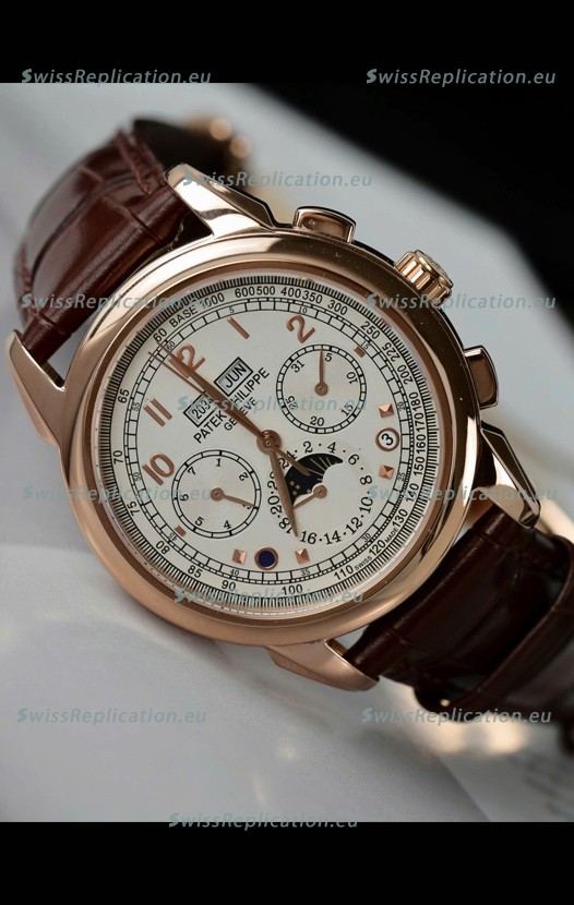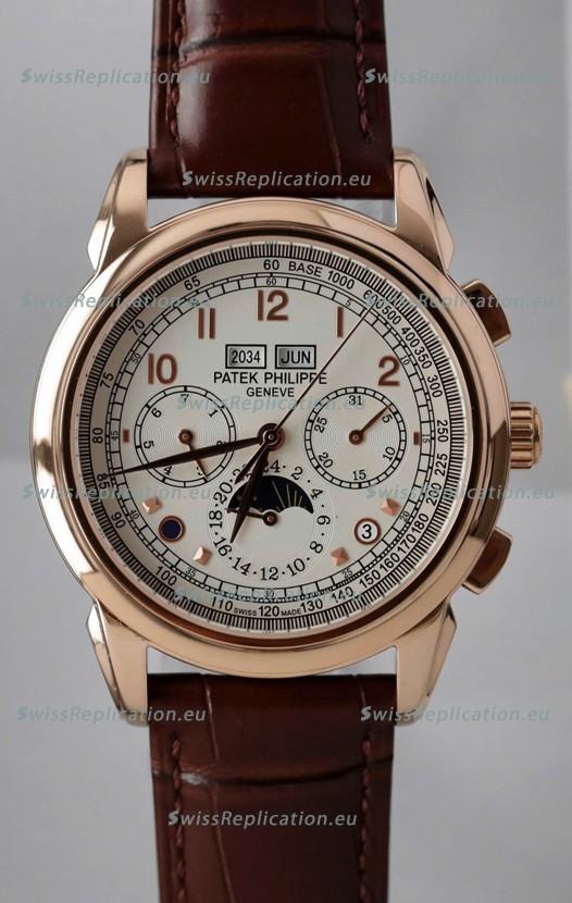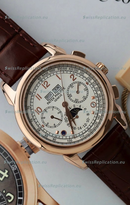| Description | Patek Philippe Grand Complications 5270 Swiss Replica Watch in Rose Gold Casing White Dial |