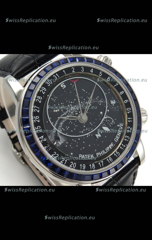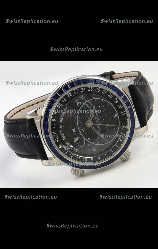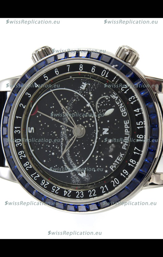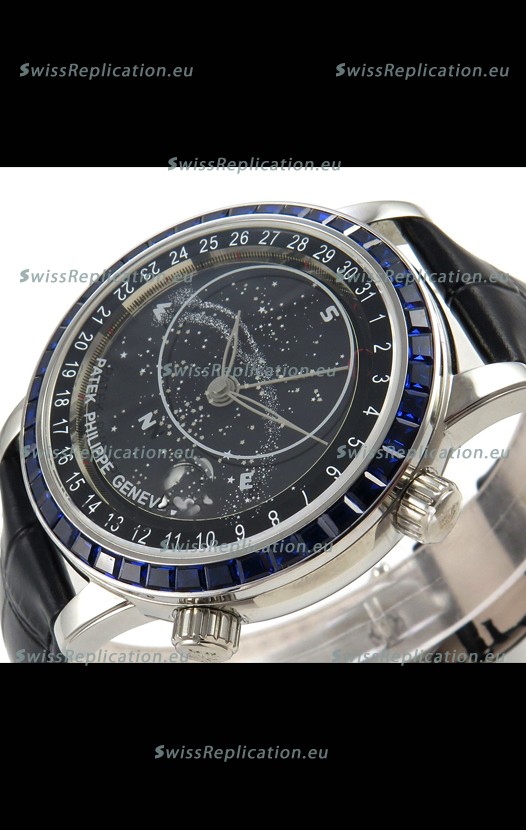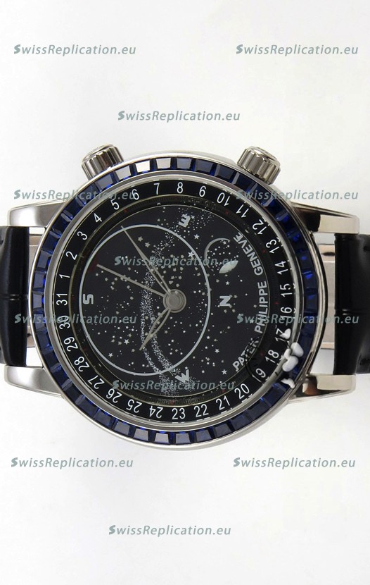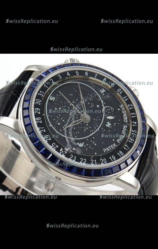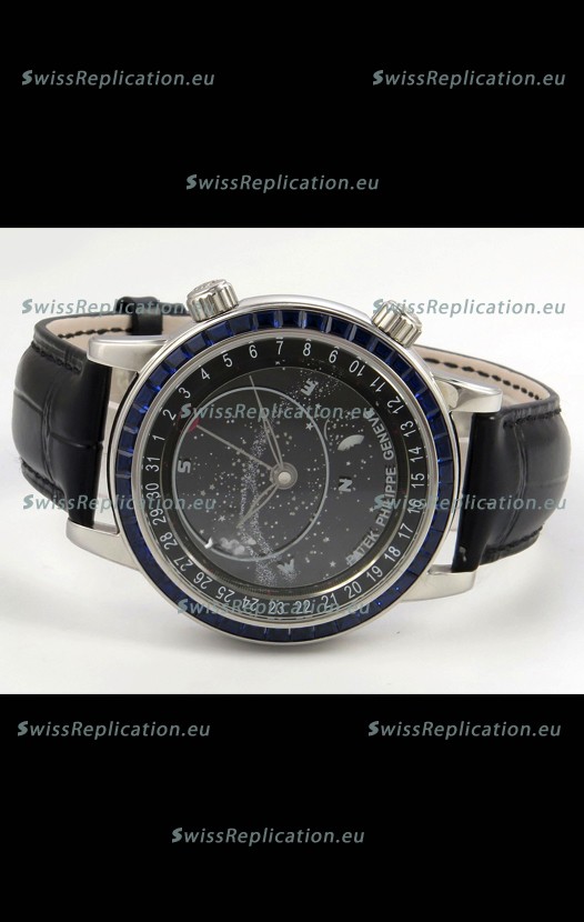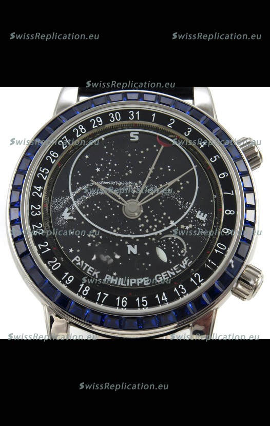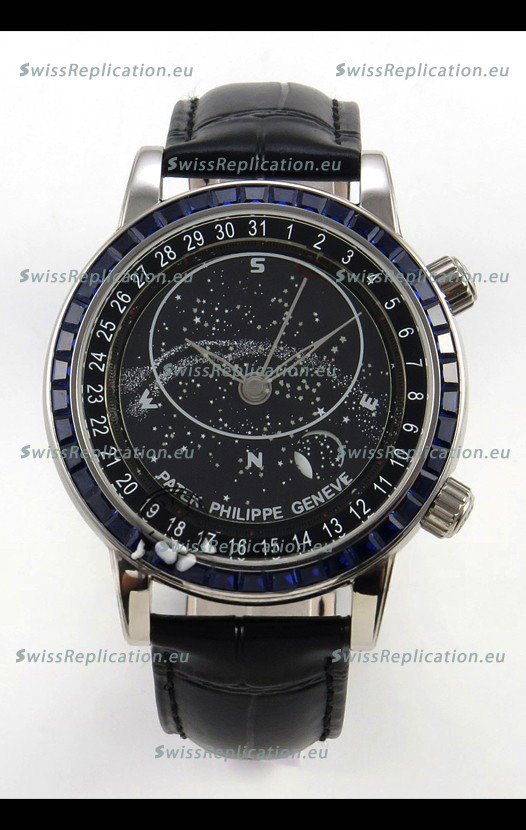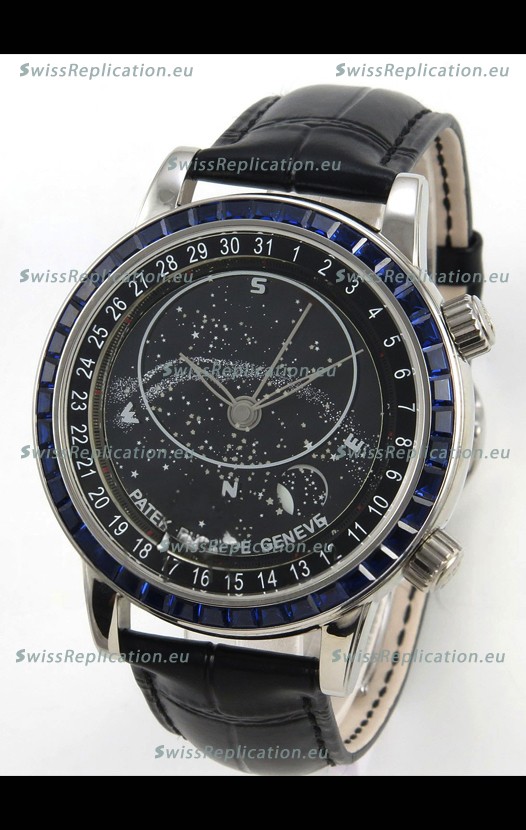 | Description | Patek Philippe Grand Complications 6102 Black Dial Blue Diamonds Swiss Replica Watch |