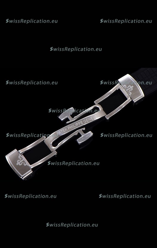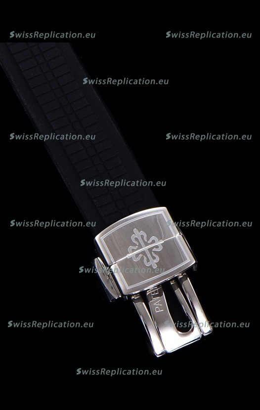 New Style Curved Rubber Strap with Steel Folding Clasp complete with Patek Philippe Markings.