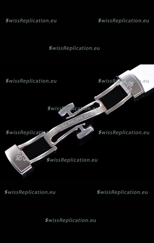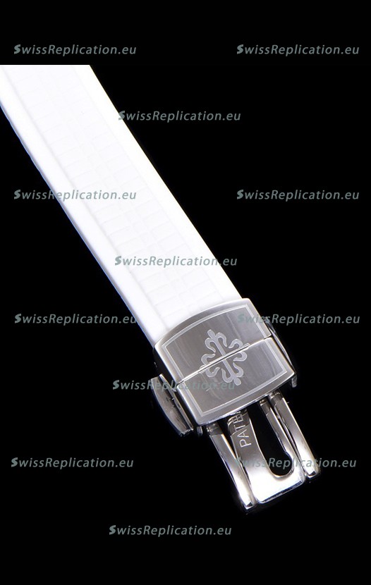 New Style Curved Rubber Strap with Steel Folding Clasp complete with Patek Philippe Markings.
