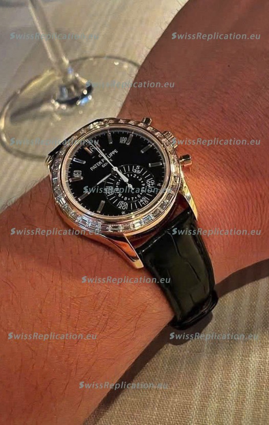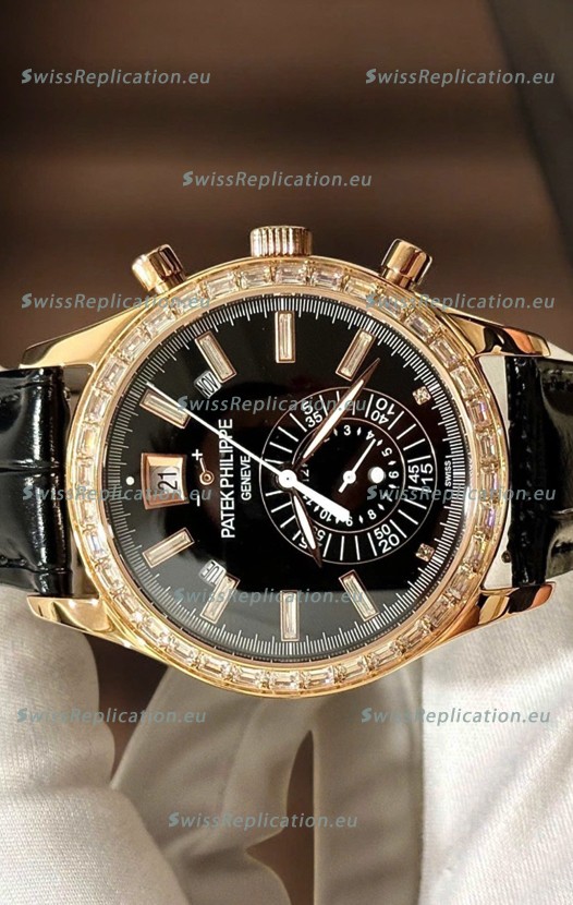Description Patek Philippe Super Clone Complications 5961 Rose Gold Watch with Mossanites