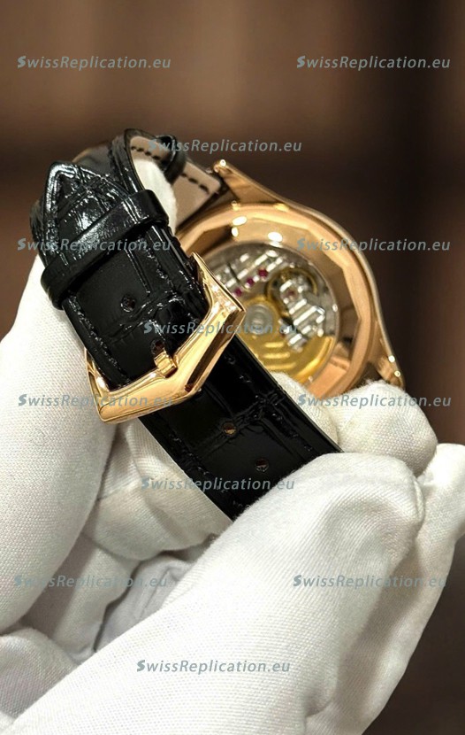 Genuine Leather Strap with Stainless Steel Tang buckle complete with Patek Philippe Markings and Engravings