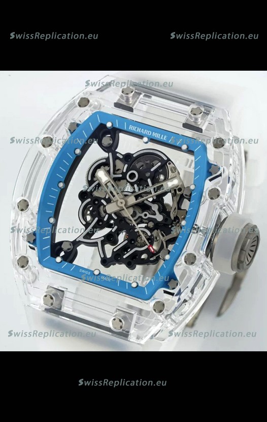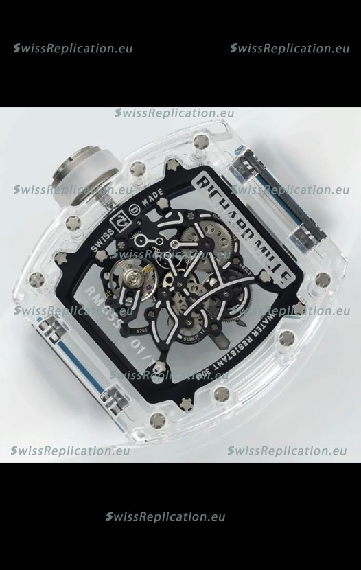 | Description | Richard Mille RM055 Transparent Sapphires Casing with Genuine Tourbillon Super Clone Watch |