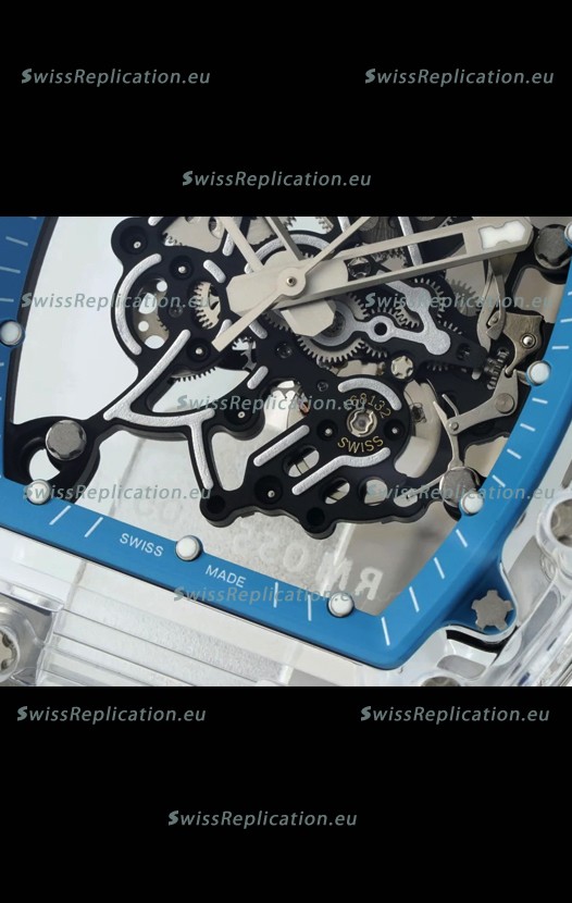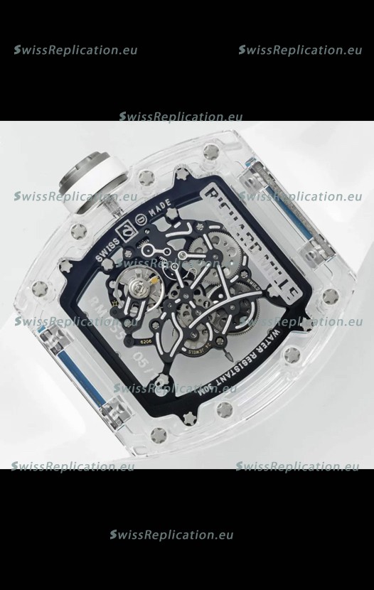 | Description | Richard Mille RM055 Transparent Sapphires Casing with Genuine Tourbillon Super Clone Watch |