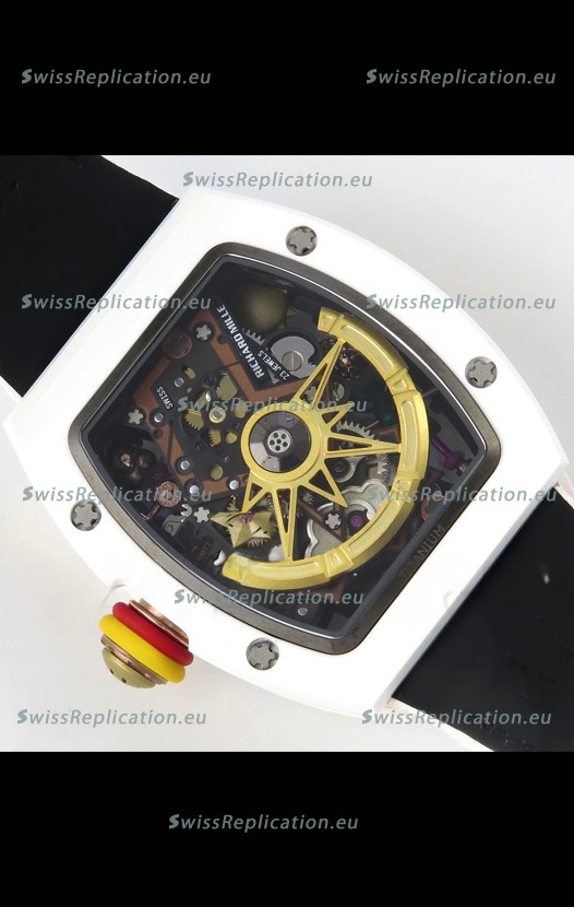| Description | Richard Mille Super Clone RM088 Smiley Tourbillon White Ceramic Velcro Strap Watch |