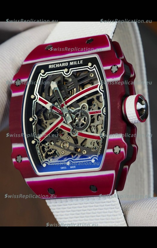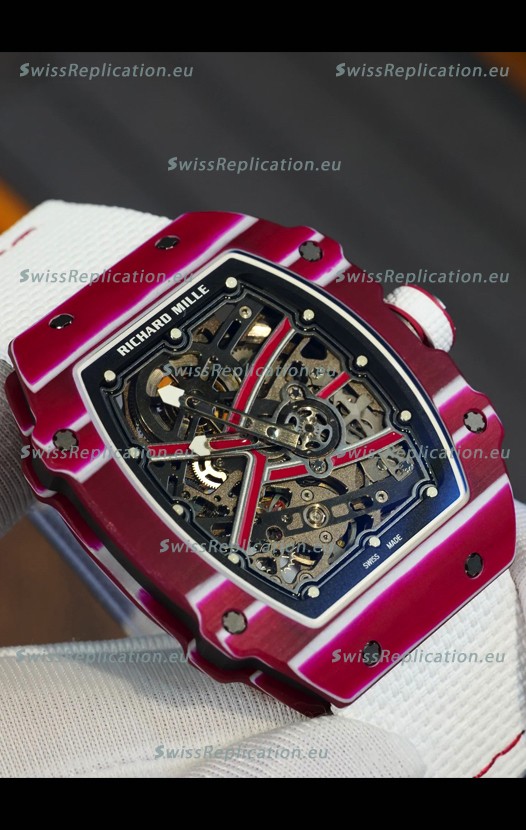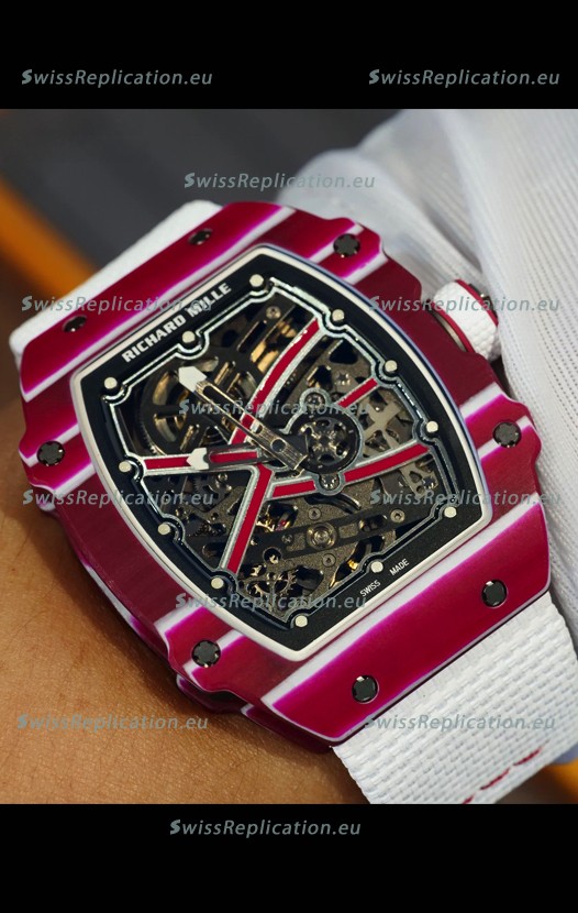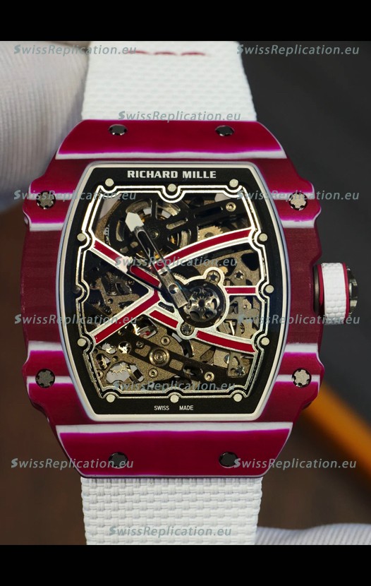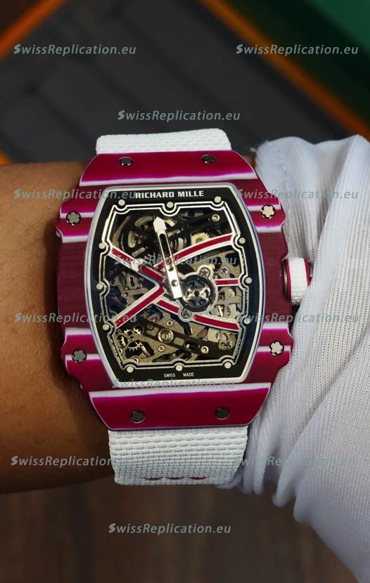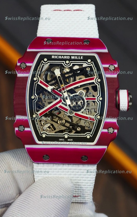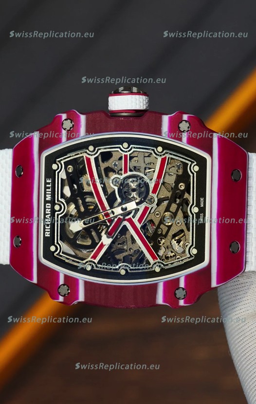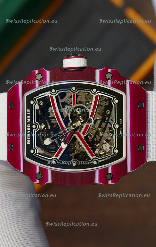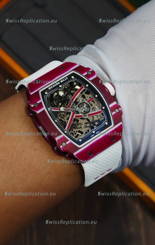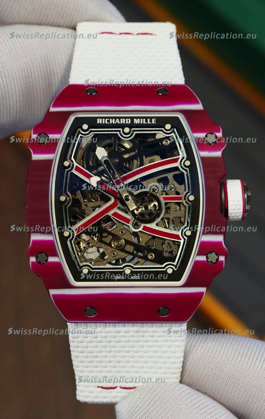 | Description | Richard Mille Super Clone RM67-02 Mutaz Barshim Red Carbon TPT 37 Grams Watch White Strap |