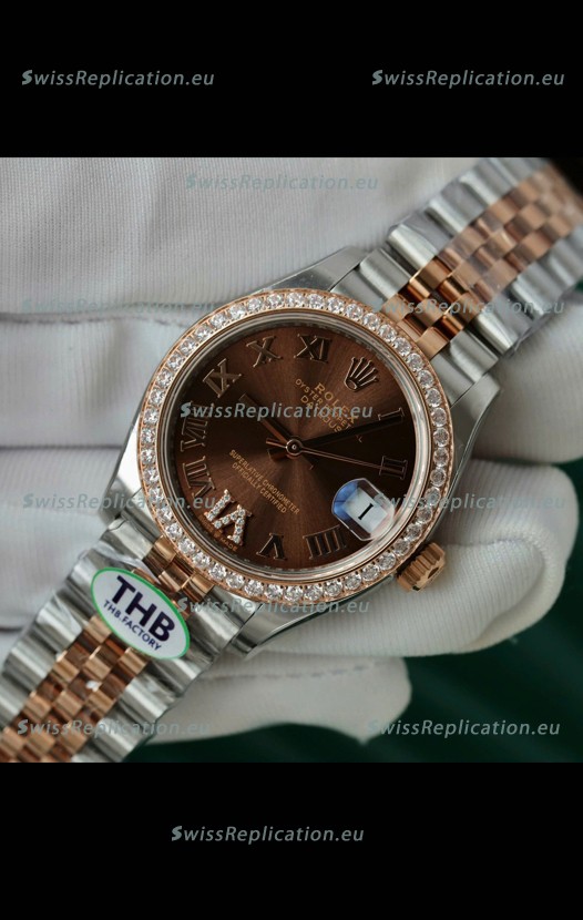 | Description | Rolex Datejust Cal.3235 Movement Super Clone Rose Gold 2 Tone 31MM Brown Dial Watch |